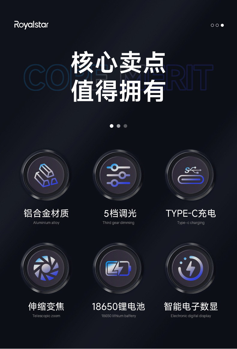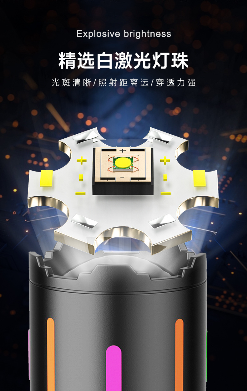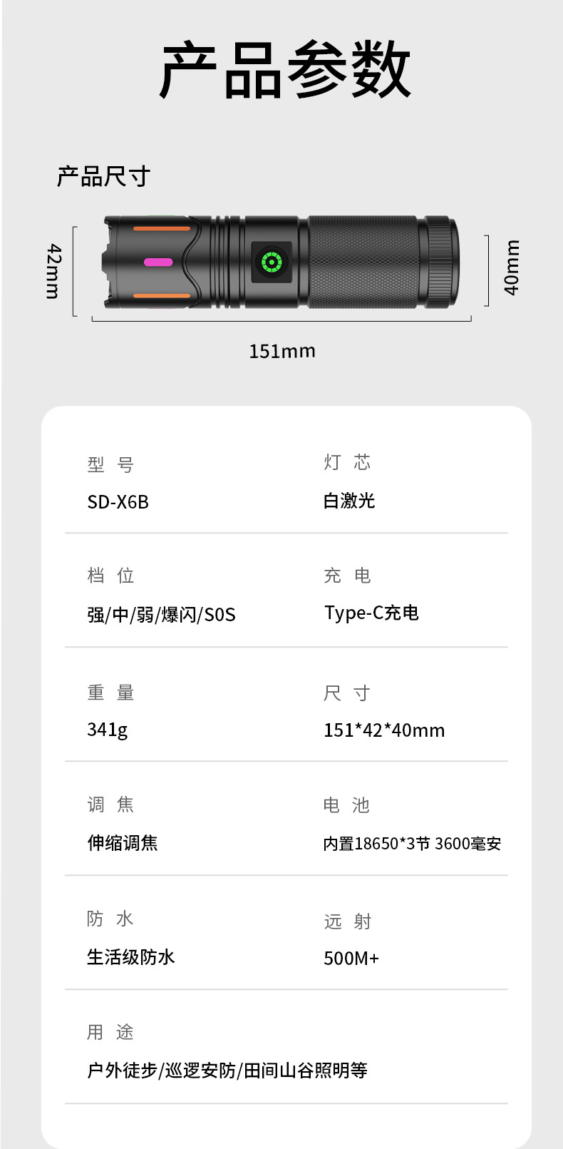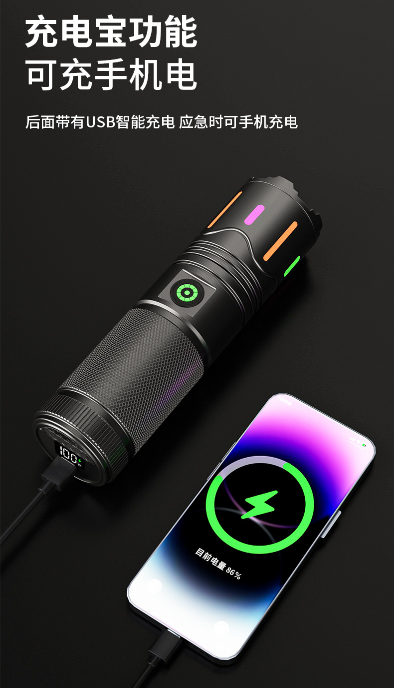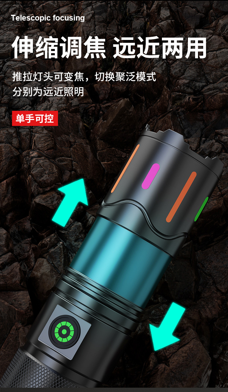 白レーザー懐中電灯強光遠射アルミニウム合金伸縮ズーム多機能屋外出力長航続懐中電灯