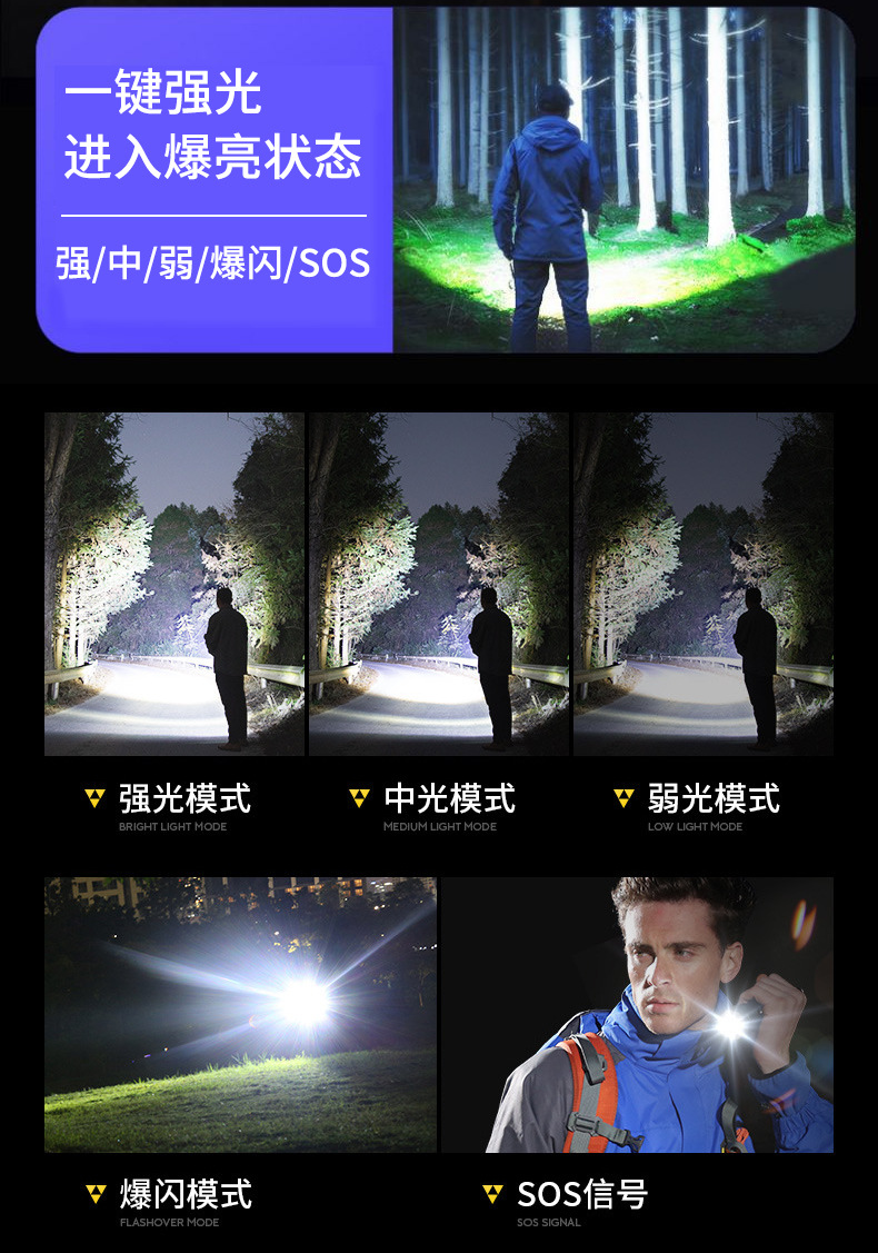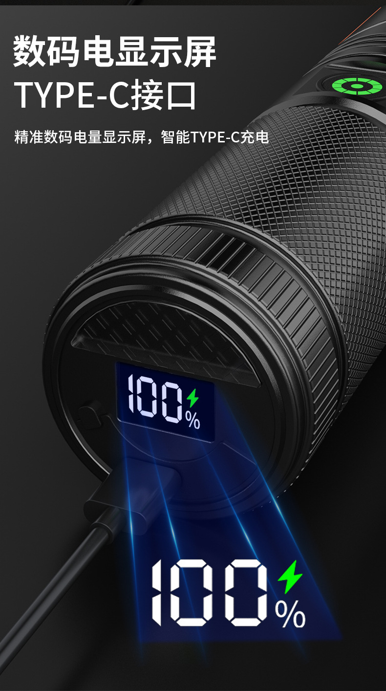 クロスボーダーホワイトレーザー懐中電灯ハイパワーアルミヘッド伸縮ズーム多機能屋外照明強力なライトデジタルディスプレイ懐中電灯