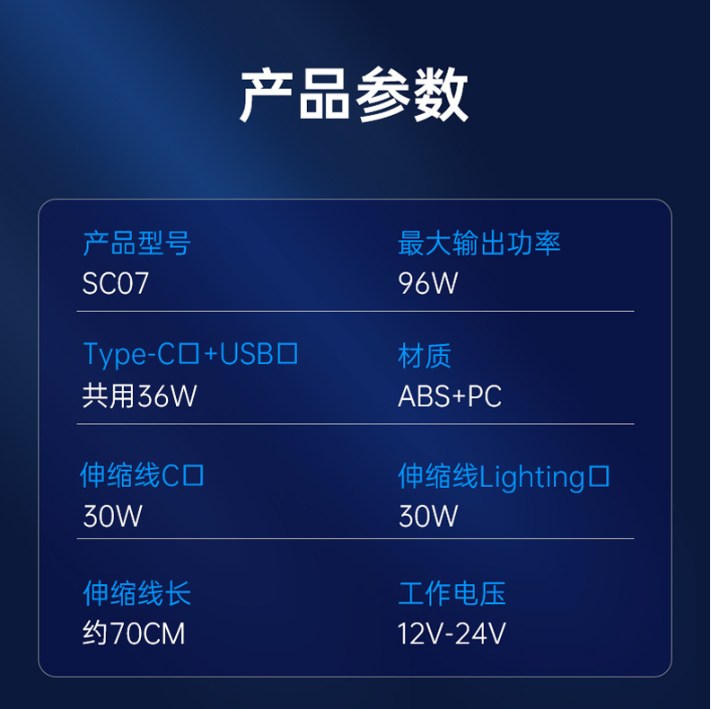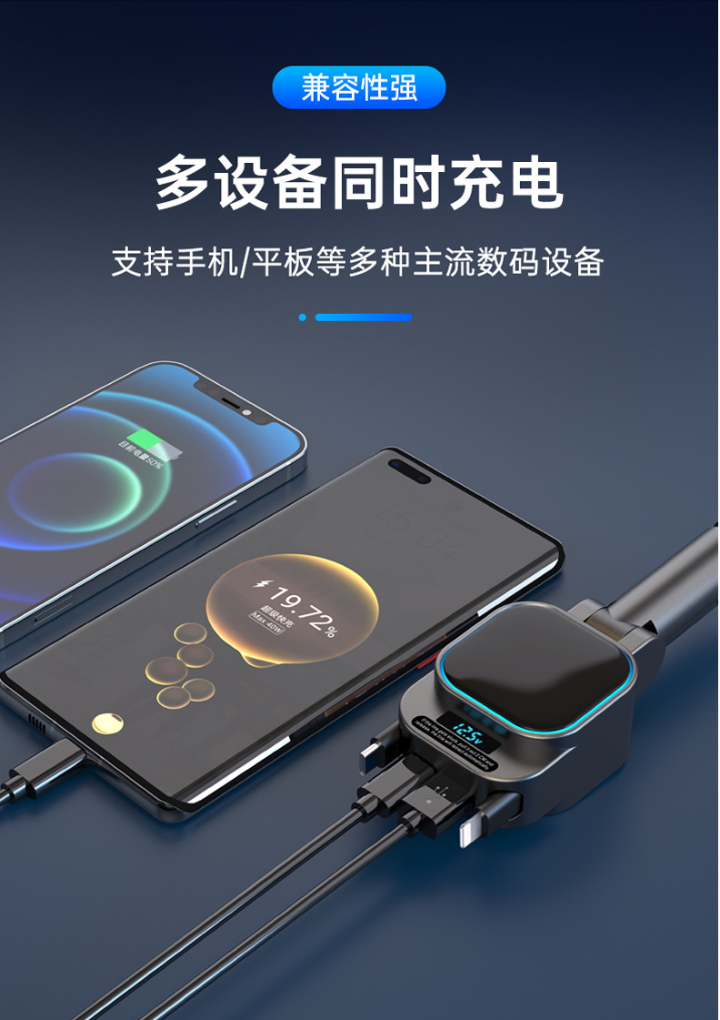 伸缩线一拖四超级快充车充汽车多功能点烟器转换插头pd车载充电器