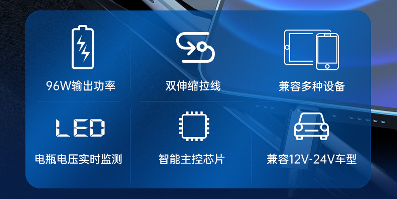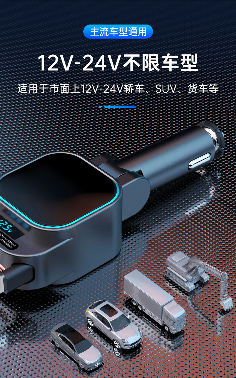 车载120W充电器伸缩线手机超级快充一拖二点烟器插头适用苹果安卓