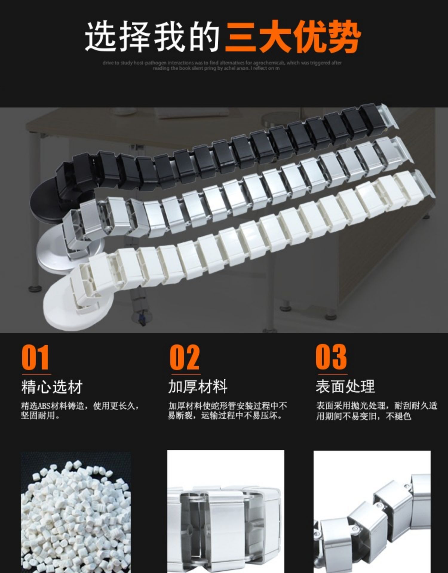 加厚ABS塑料办公桌底穿线管走线槽藏电线蛇形管会议桌圆形走线管