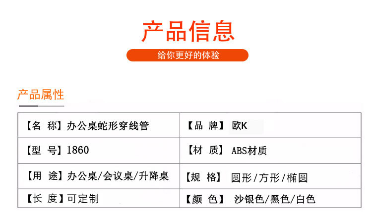 メーカースポットデスクラウンドヘビ型糸通しチューブ会議室隠しワイヤーチューブワイヤートラフプラスチック糸通しチューブスポット