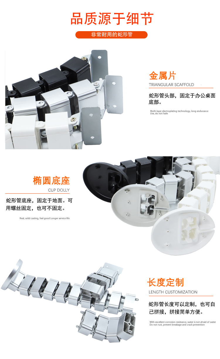 办公室会议桌走线槽蛇形藏线穿线管 圆形方形过线管电脑线收纳管