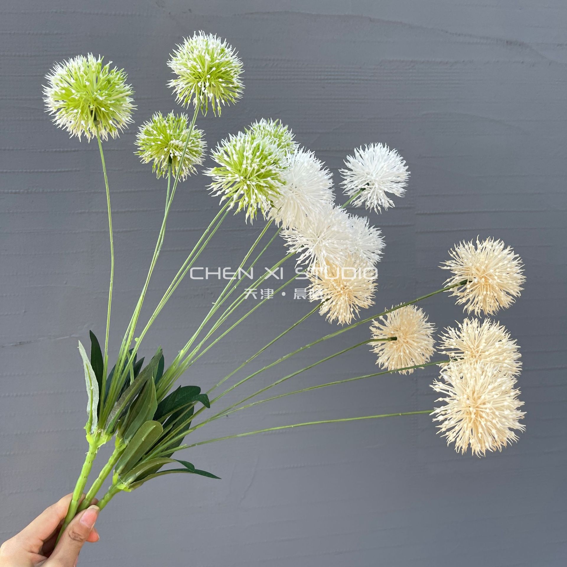 タンポポの造花5頭のネギのボールの花のボールの田園の風の家の装飾の結婚祝いの花の芸を撮影します。