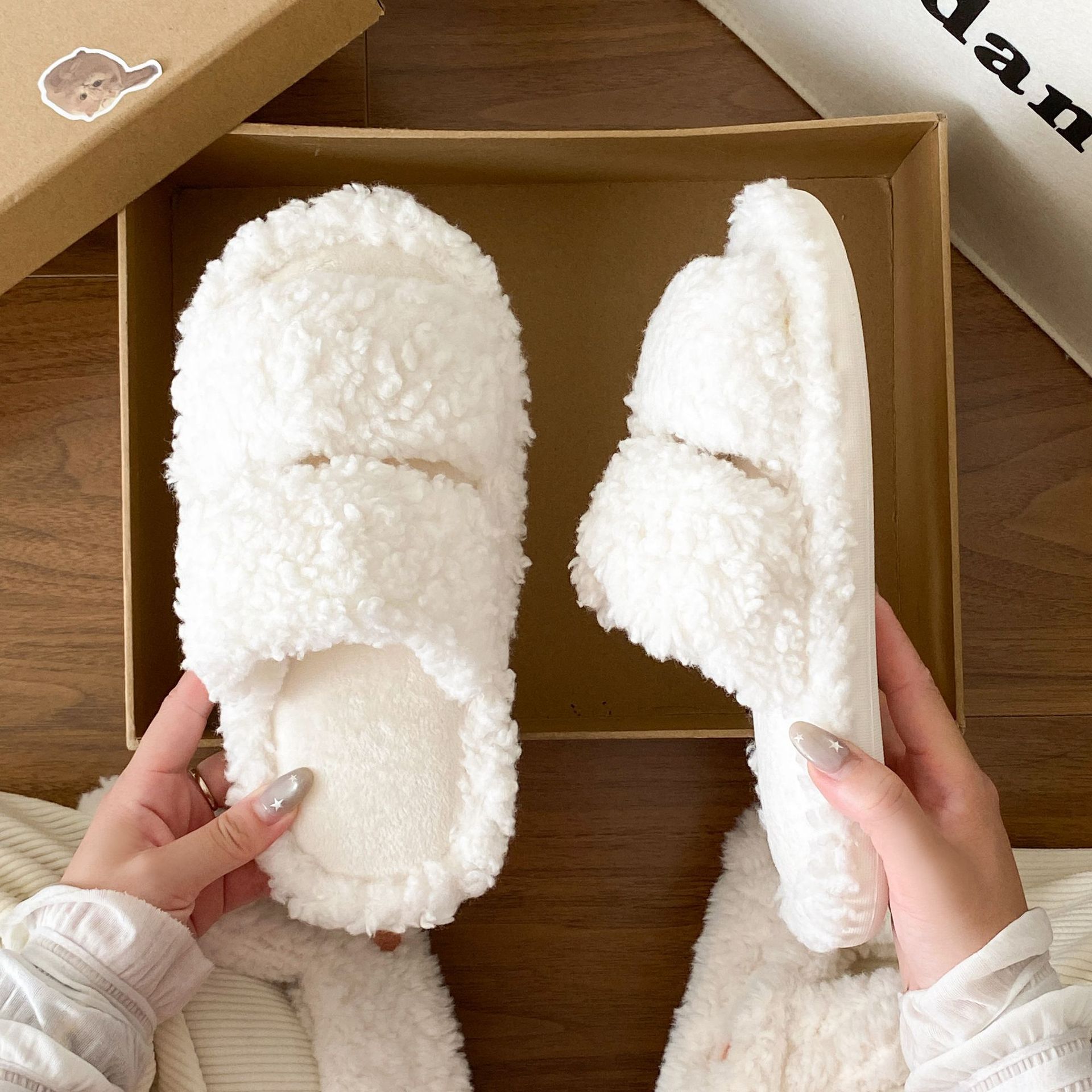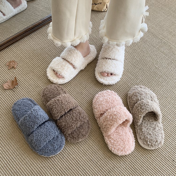 2025年秋冬百搭纯色情侣款大码地板拖舒适保暖厚底耐穿双条毛毛拖