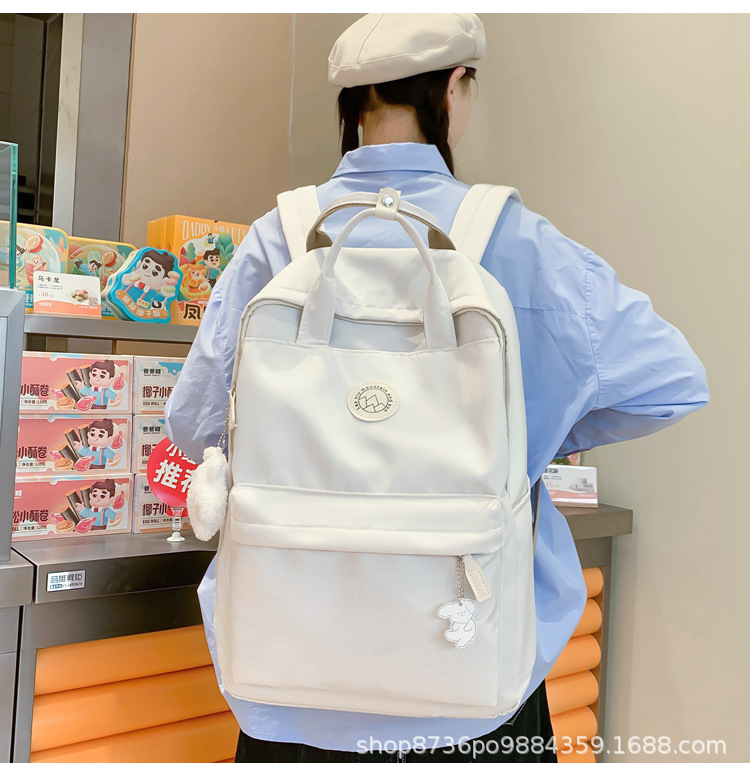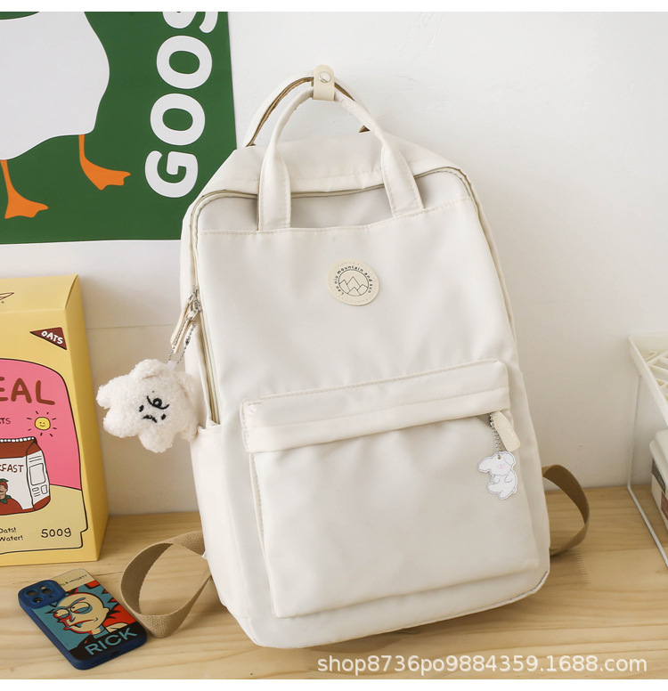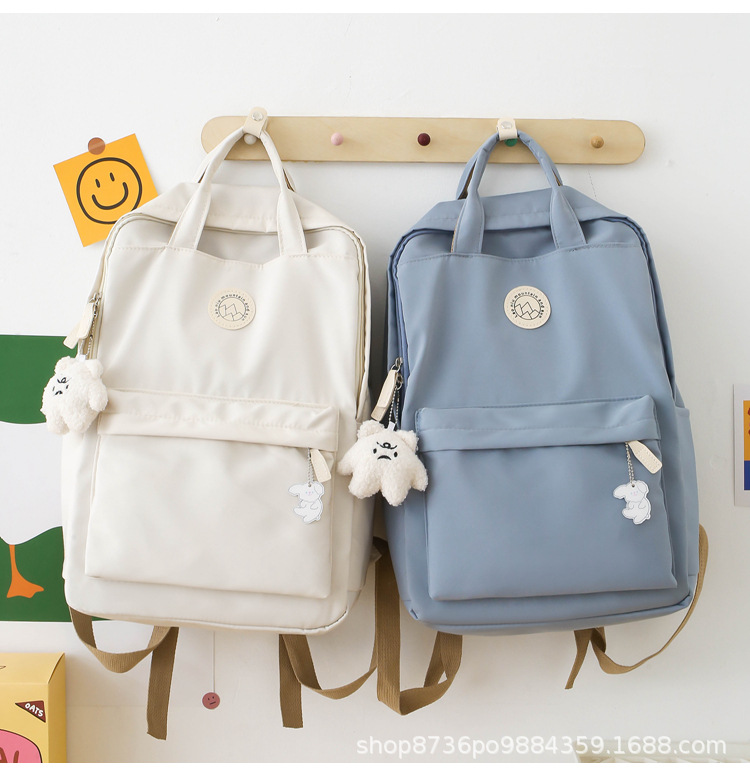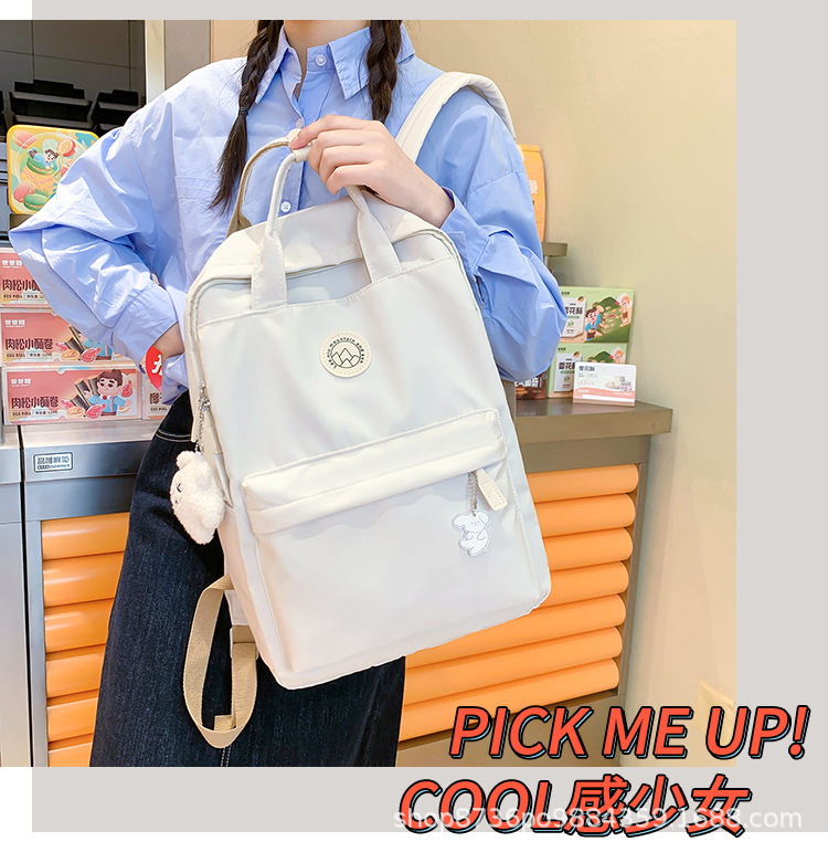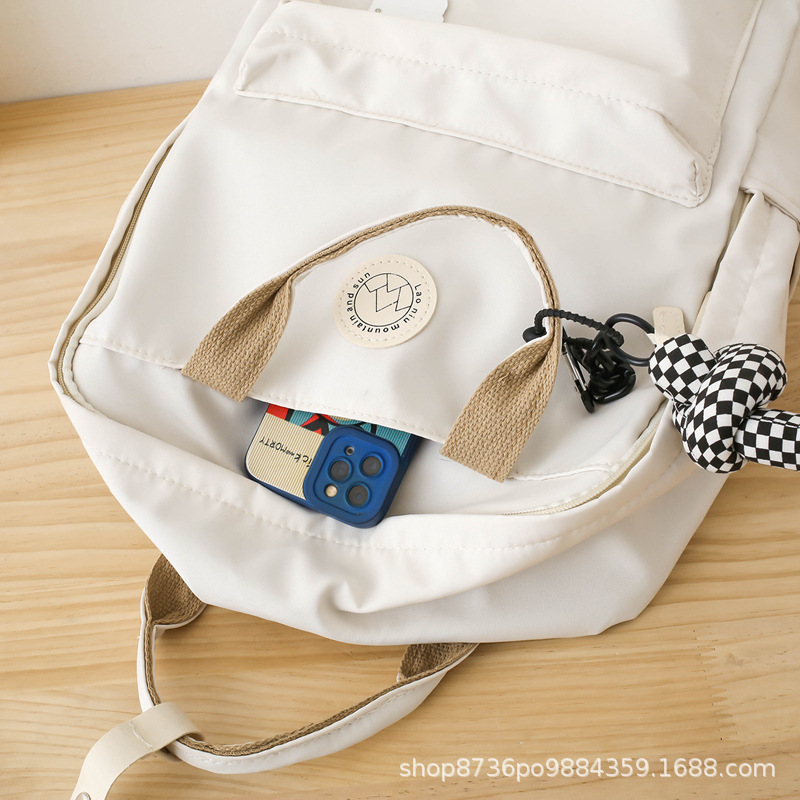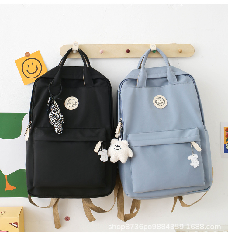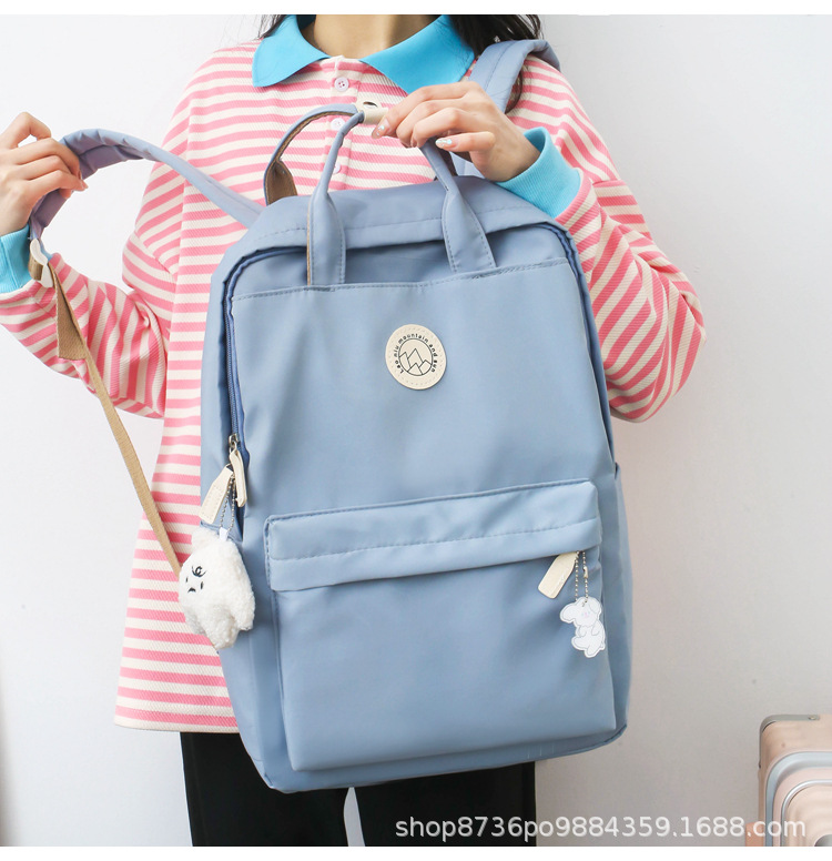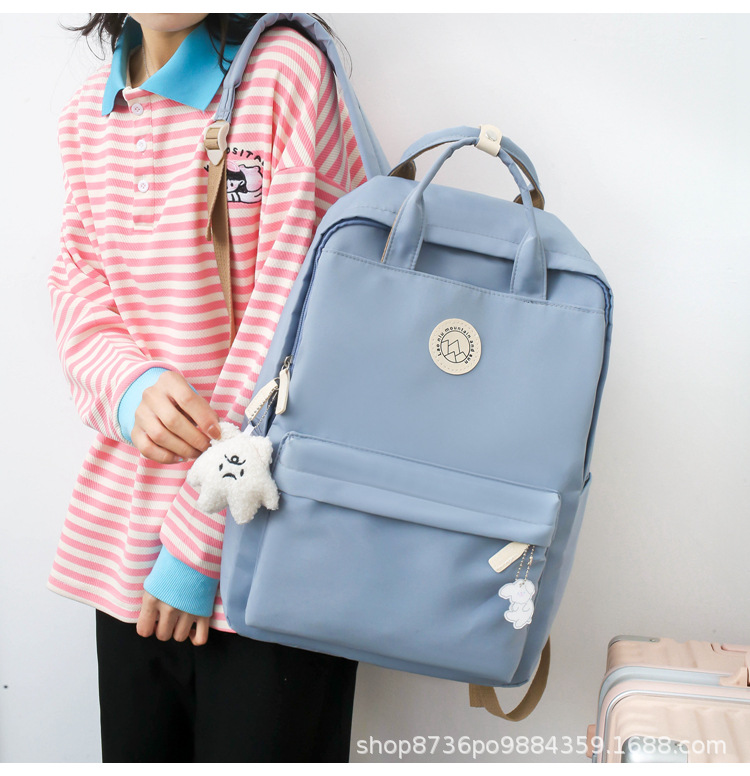 日本系ins少女リュックサック韓国版中学校学生カバン女性ファッション大容量純色ナイロン手提げリュックサック