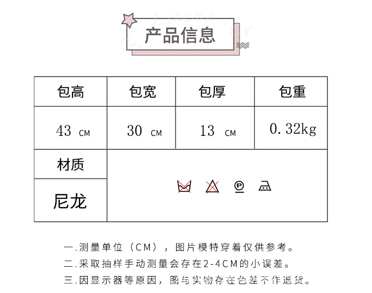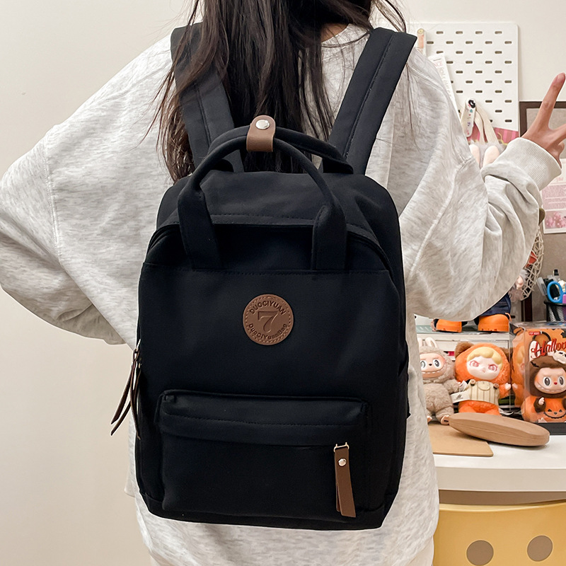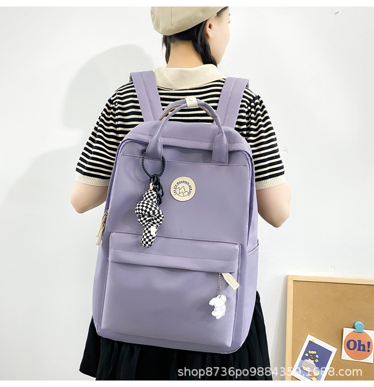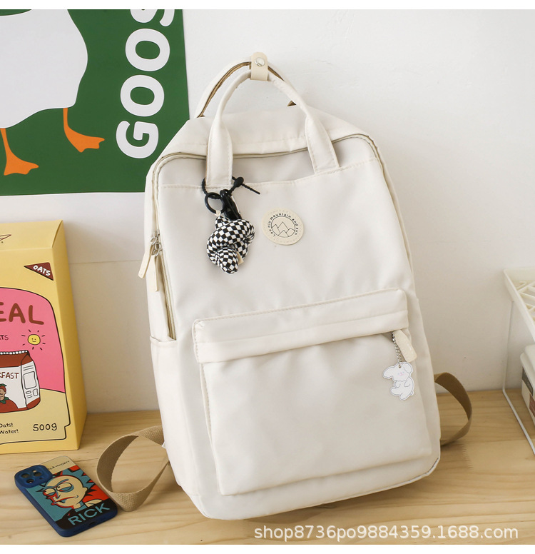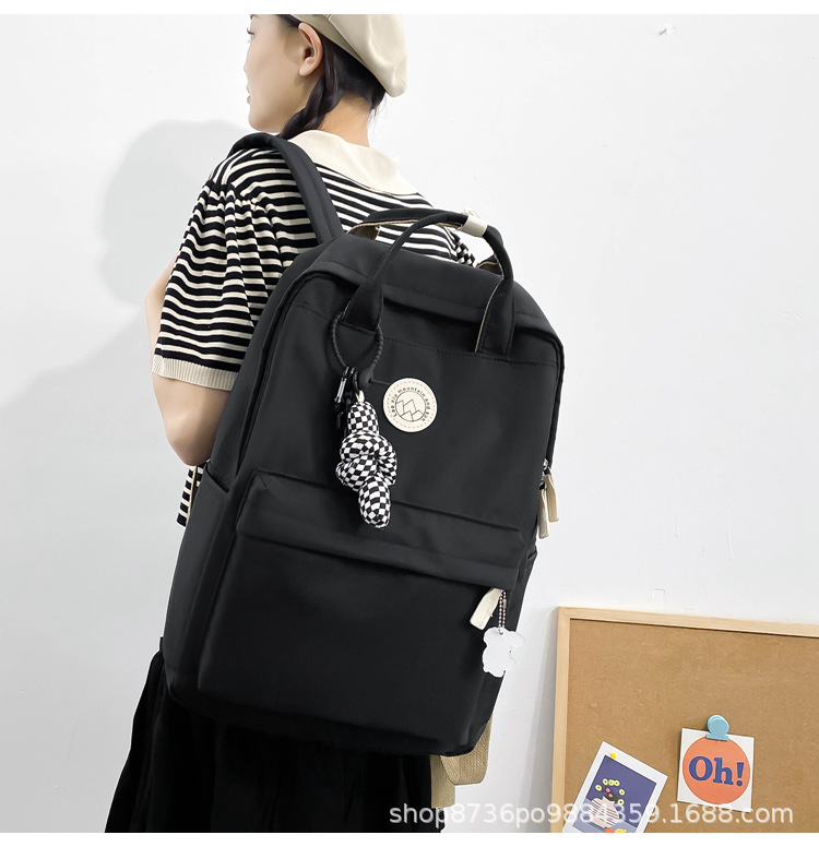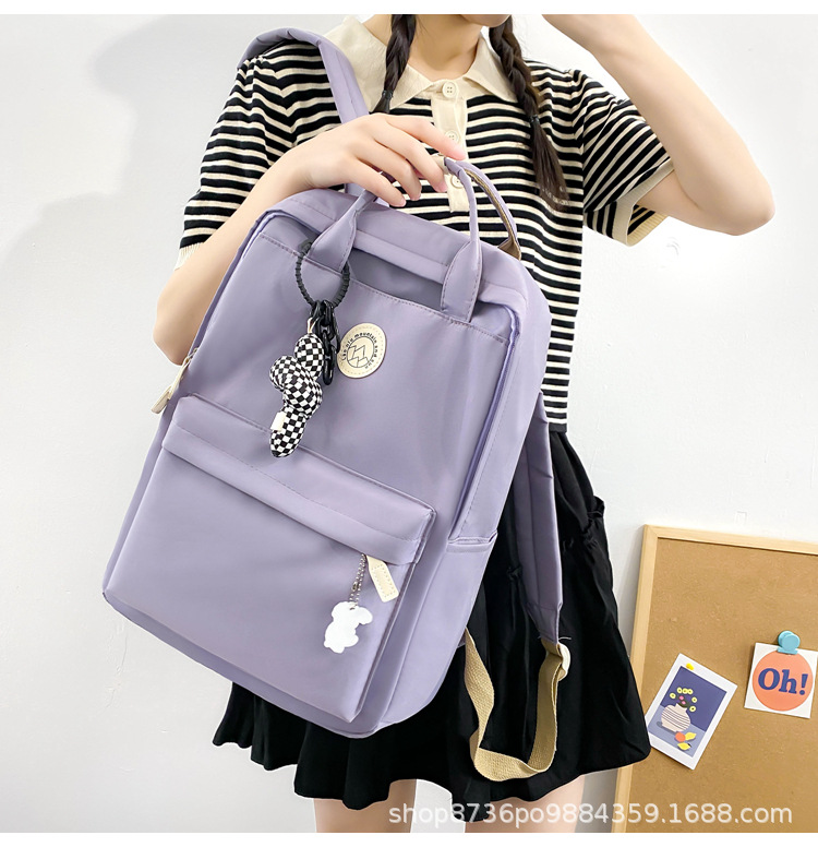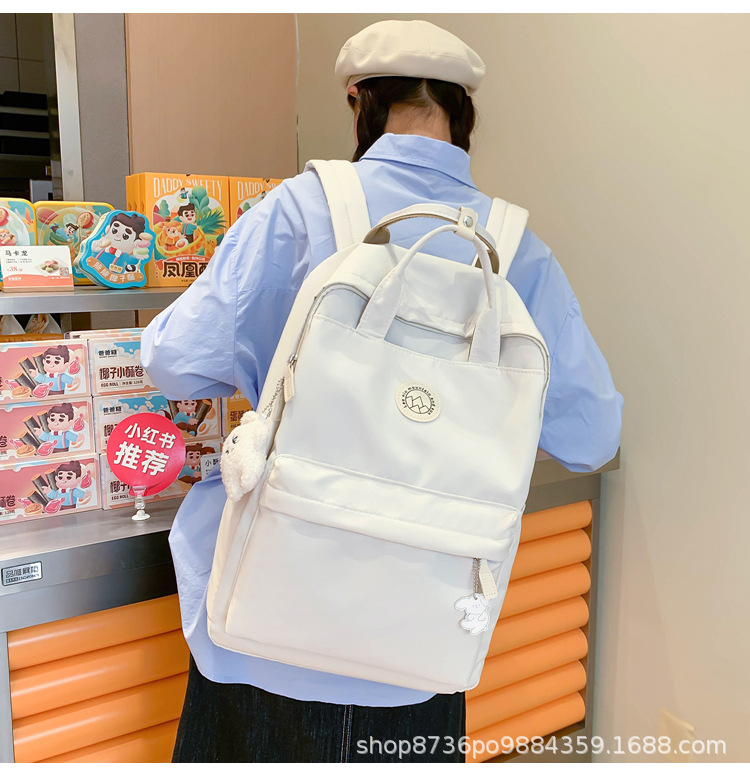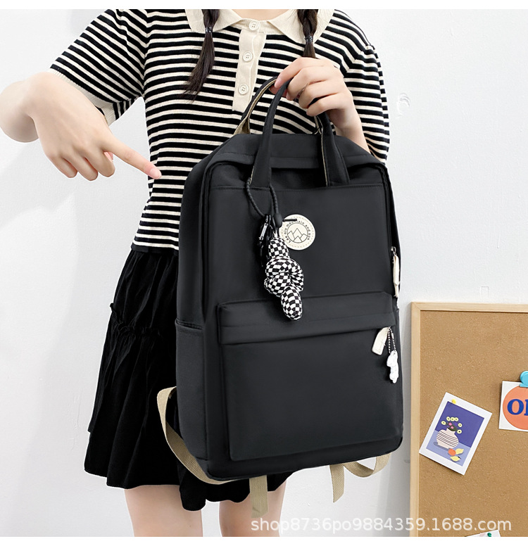 日本系ins少女リュックサック韓国版中学校学生カバン女性ファッション大容量純色ナイロン手提げリュックサック
