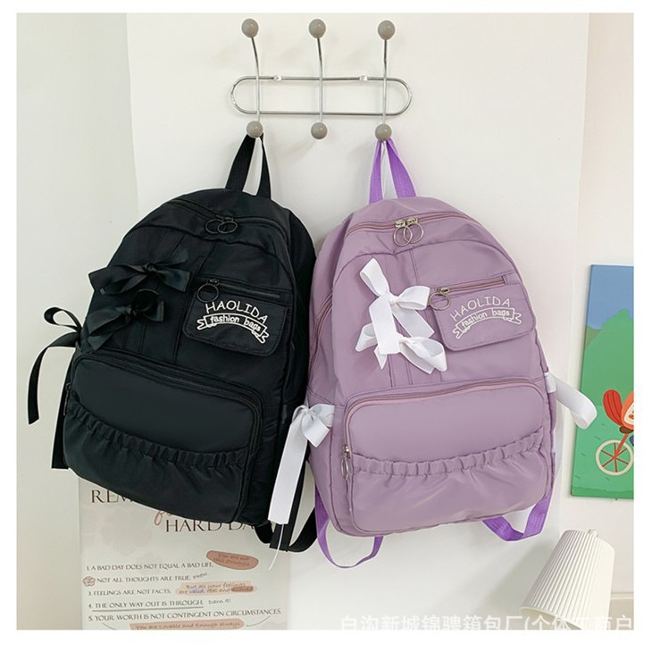 新款背包蝴蝶结元素大容量初高中休闲简约学生书包轻便质感双肩包