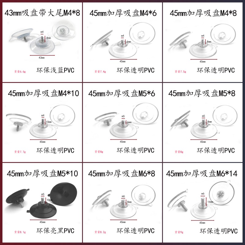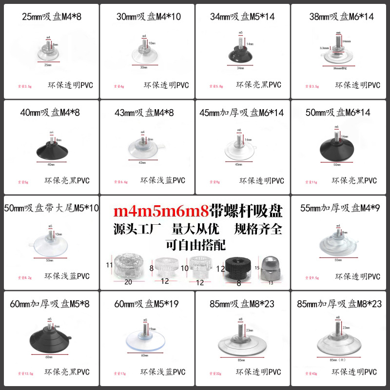 螺丝吸盘M4M5M6M8带螺杆吸盘PVC浴室挂钩厨卫跨境亚克力板配件