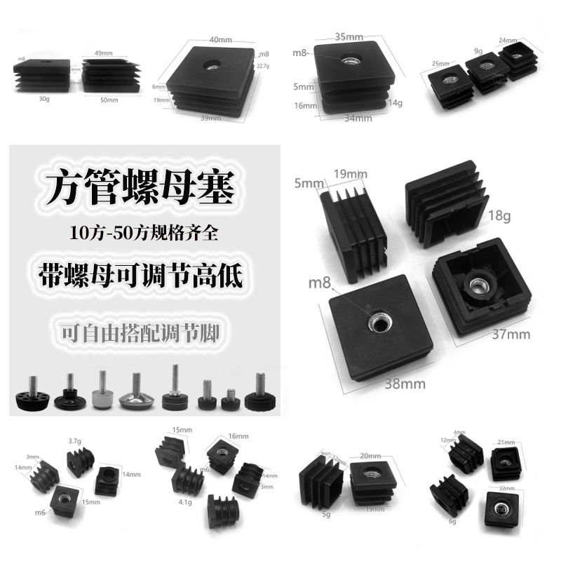 正方形パイププラグ正方形インナープラグステンレスパイプ中空パイププラグダイニングテーブル足平プラグハードウェアプラスチックプラグ卸売