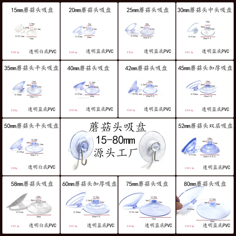 キノコヘッド吸盤平頭先先厚PVC透明青フックキッチンガード収納吸盤装飾固定部品