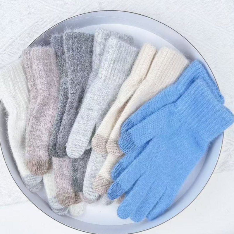 純色ニット冬女性タッチパネル防風ベルベット保温防寒毛糸手袋女性分指冬手袋