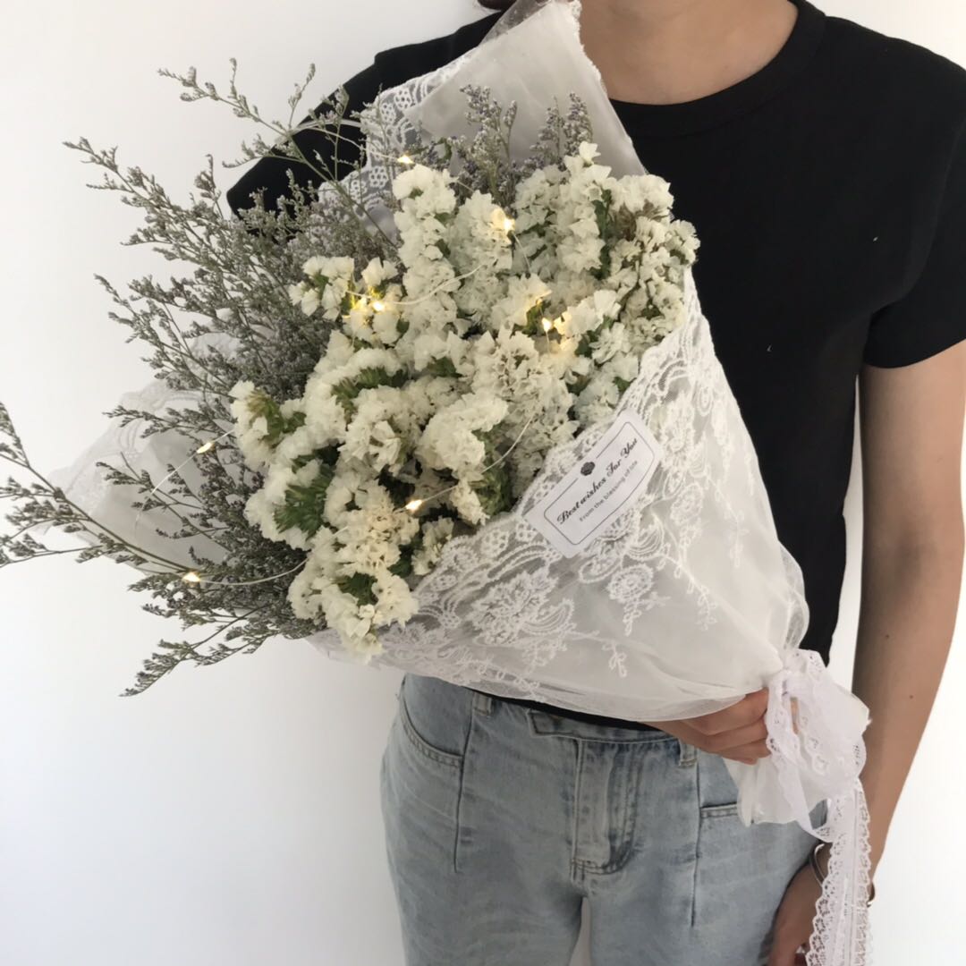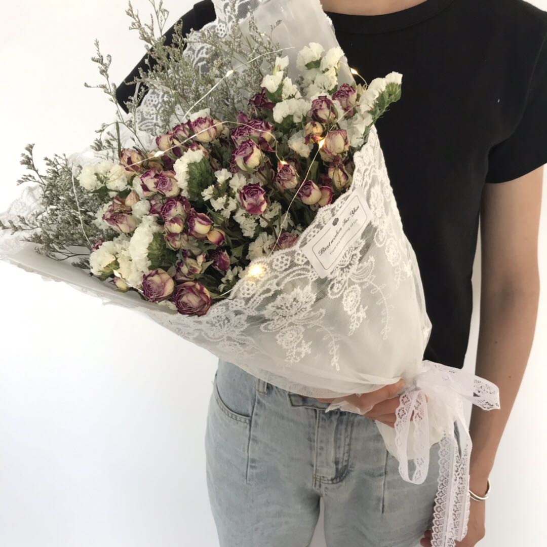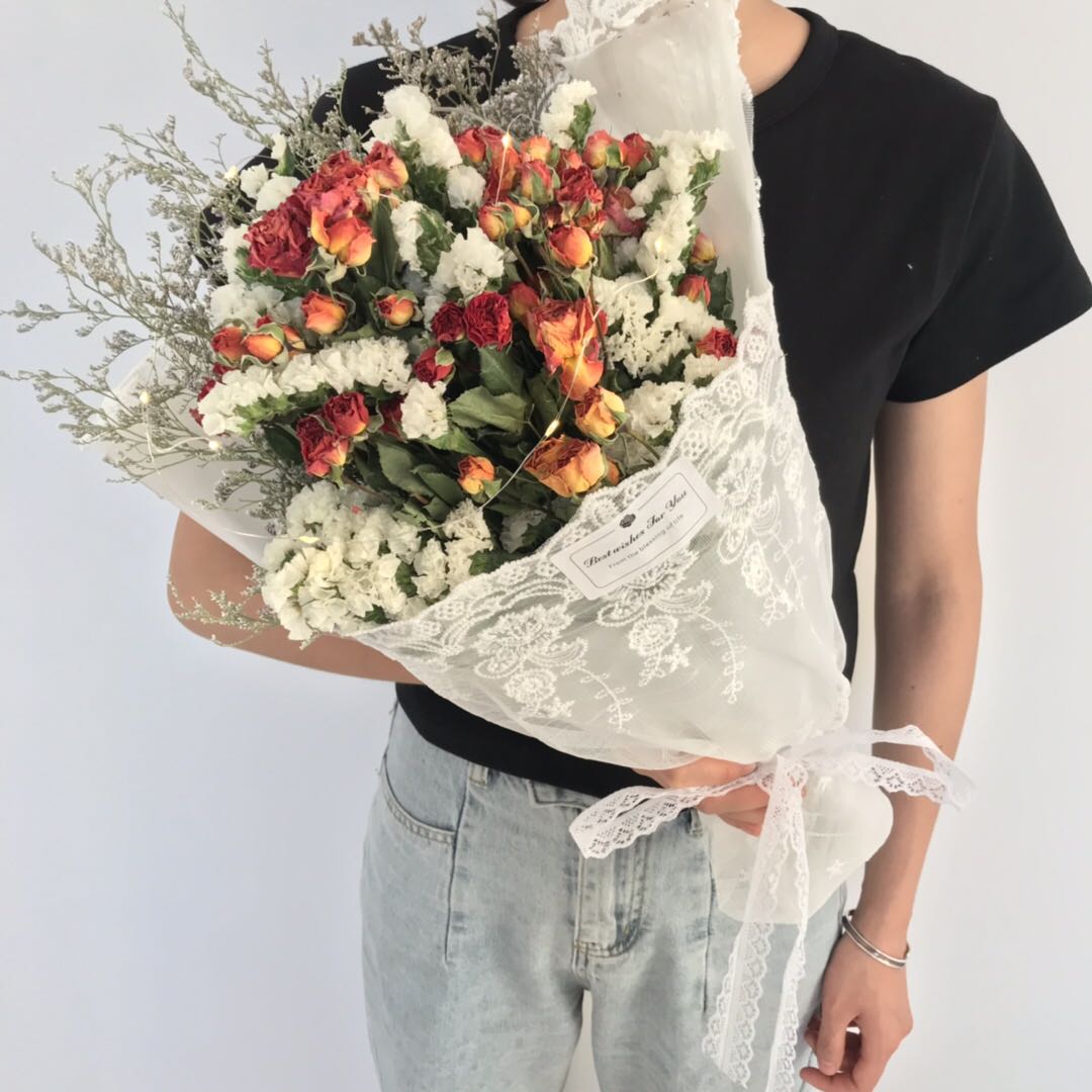 超仙ネットの赤いレースの花束のバラの乾燥した花の満天の星の小さい清新な森系の娘の蜜の卒業は人にプレゼントして写真を撮ります。