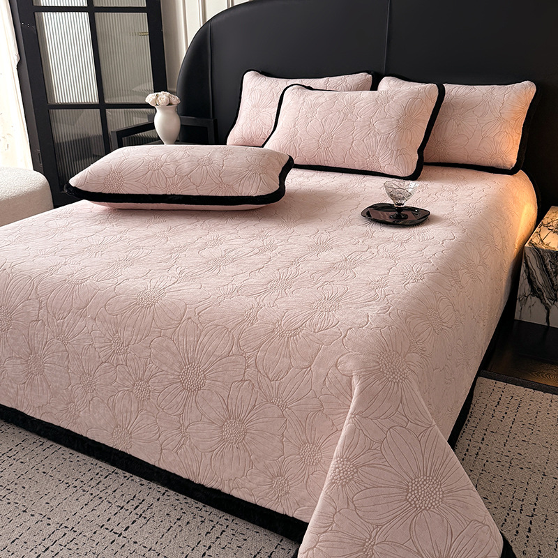 批发秋冬加厚牛奶绒床盖三件套水晶绒夹棉绗缝盖毯可机洗床单毛毯