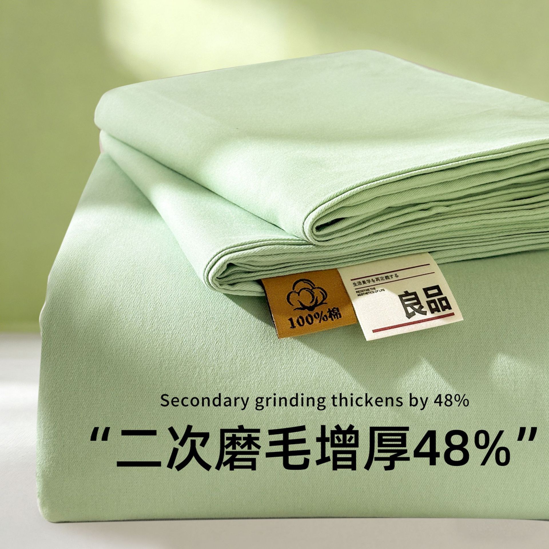 秋冬加厚磨毛100纯棉床单单件100全棉宿舍被单纯色冬枕套三件套