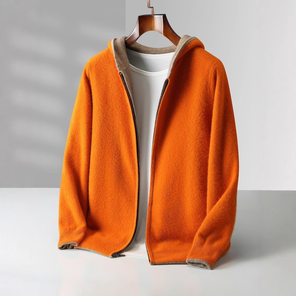 秋冬新作カシミヤカーディガンメンズ厚手ファスナーセットフード付きカジュアルゆったりセーターニットコート