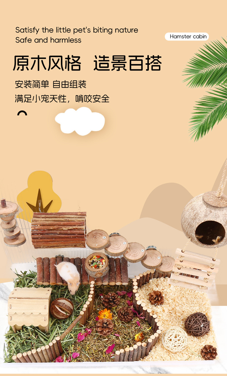 木製ハムスター爬行凉亭木橋木柵はしごハムスター造景避難屋ペット玩具ペット用品