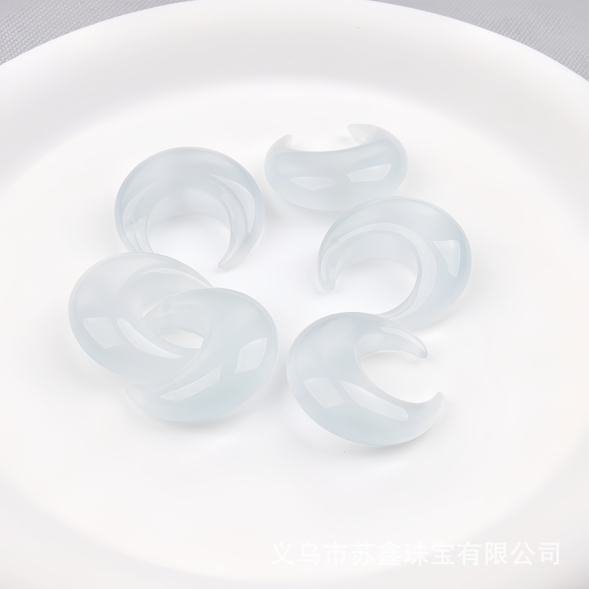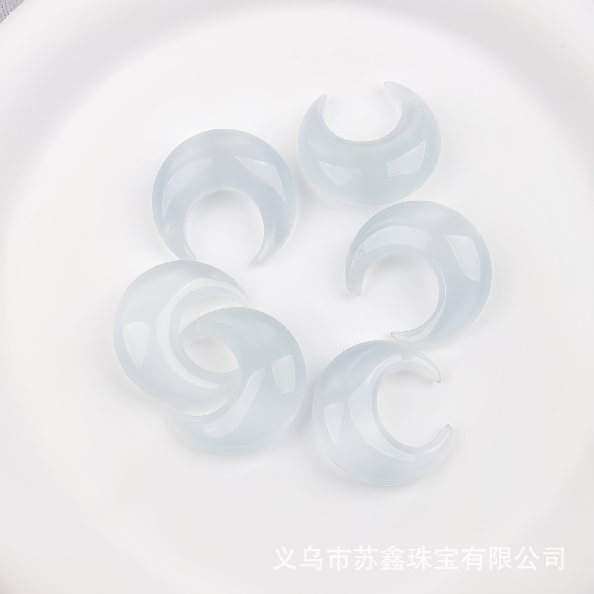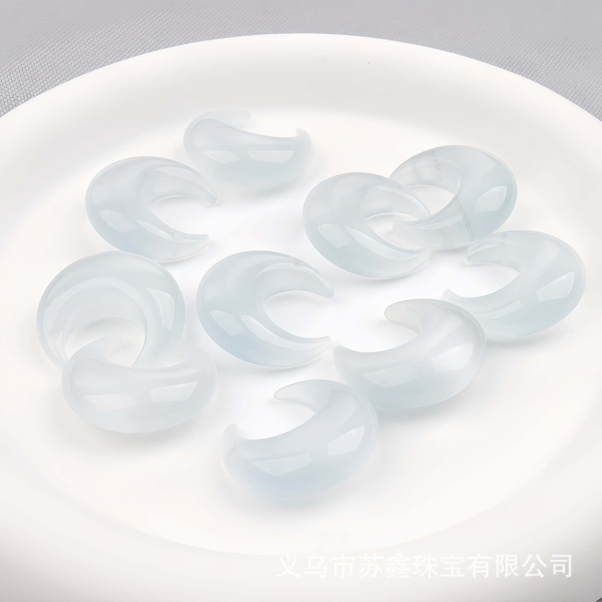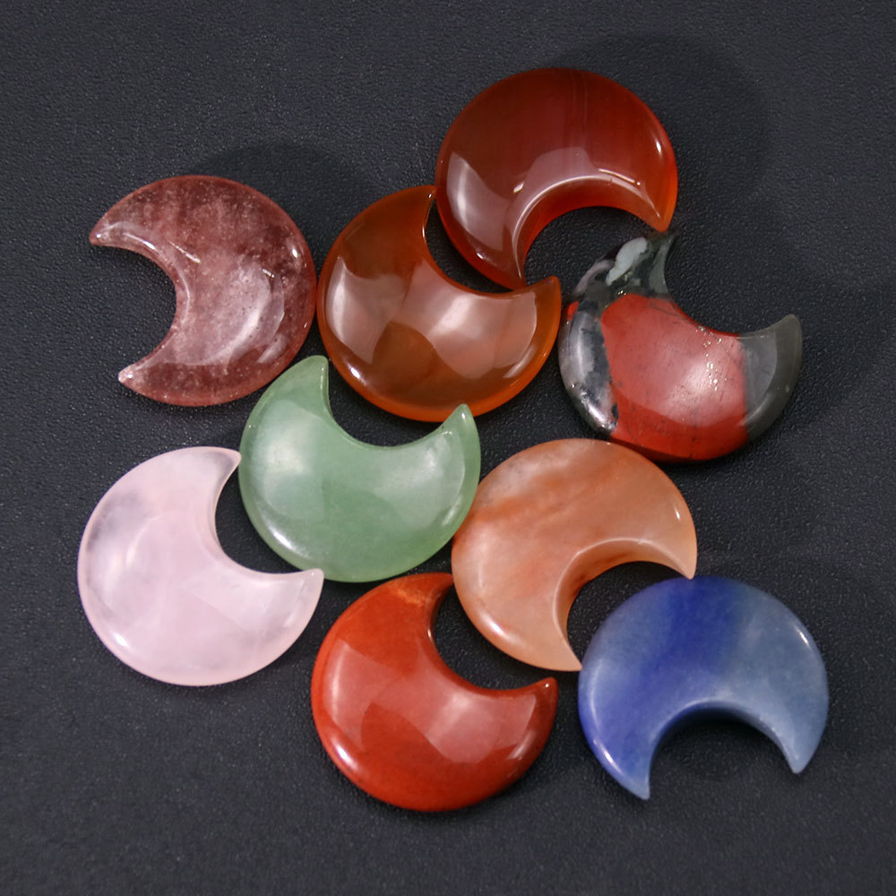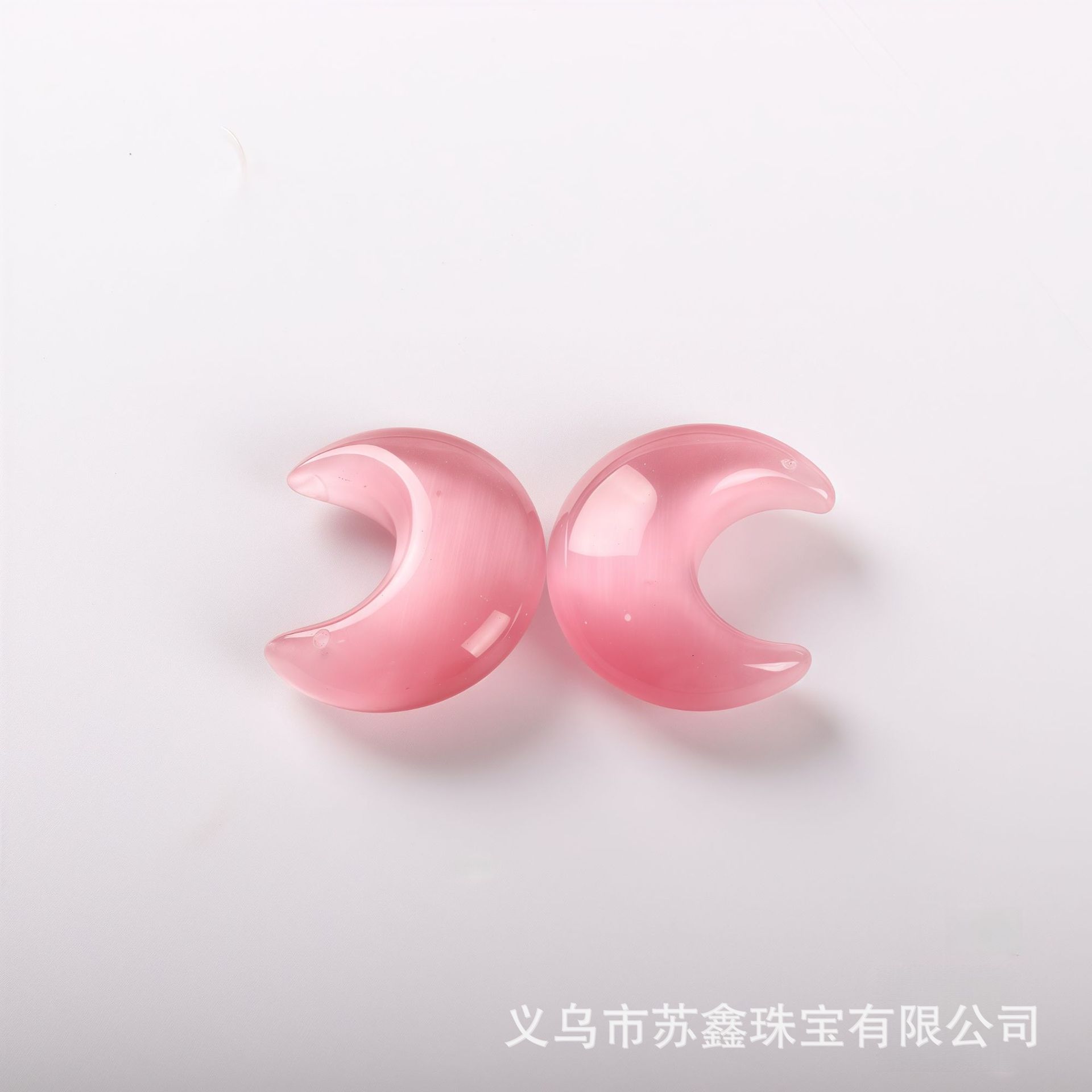 D103跨境天然粉水晶30mm无孔月亮摆件玛瑙弯月玉石diy吊坠饰品配