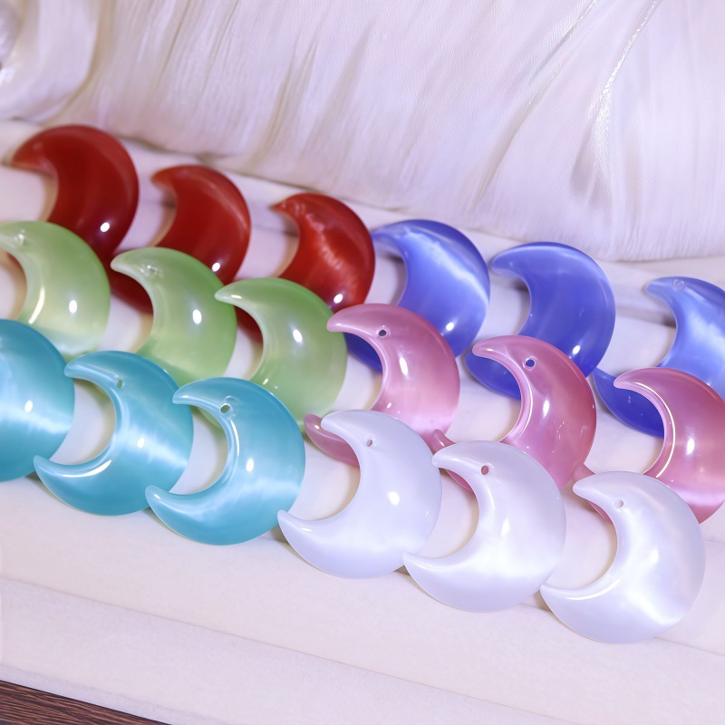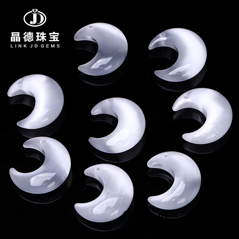 結晶徳ジュエリー25mm白色猫眼石月ペンダント三日月ペンダントdiyネックレスアクセサリースポット