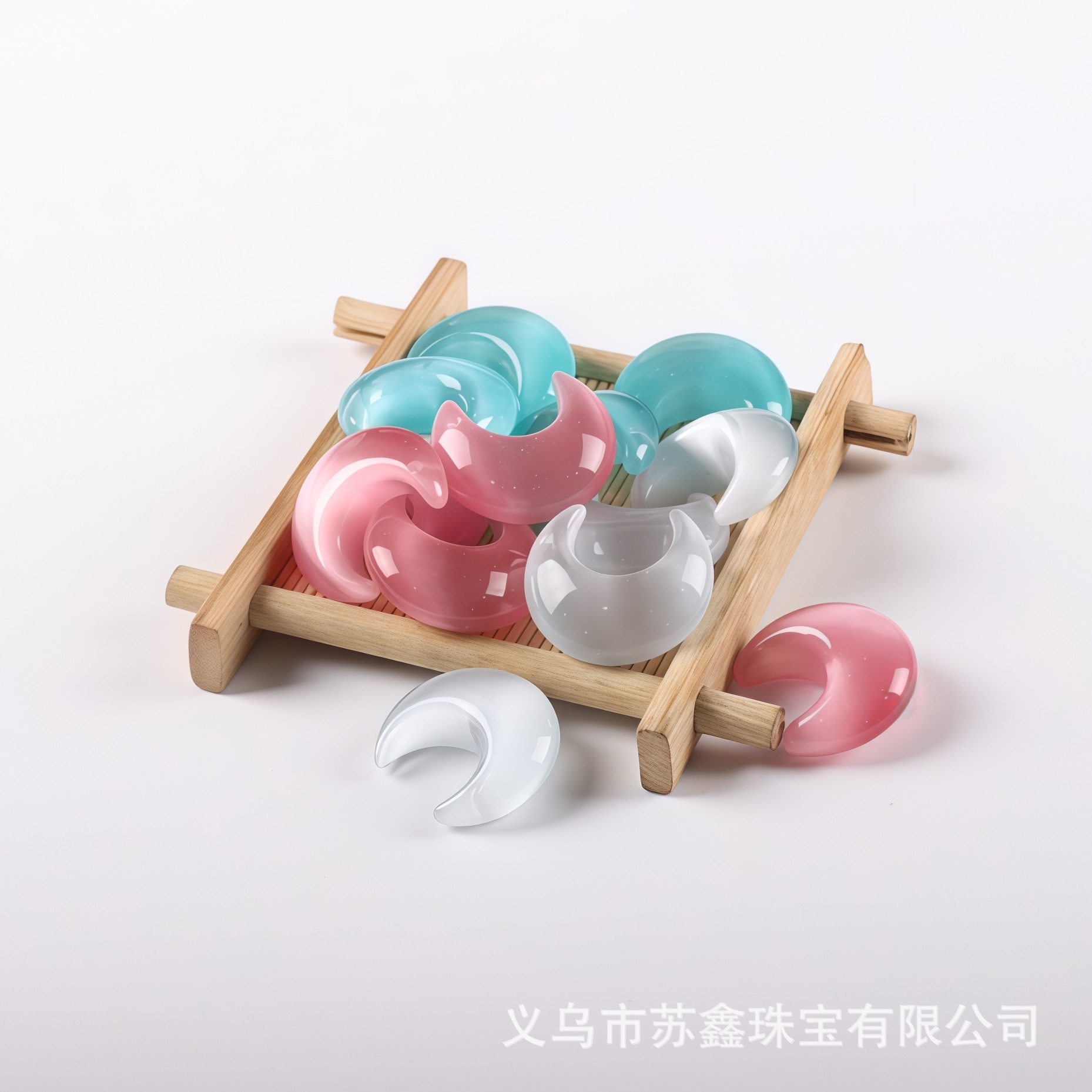 白い三日月型キャッツアイ,ピンクの三日月型キャッツアイ,ブルークレセントキャッツアイ