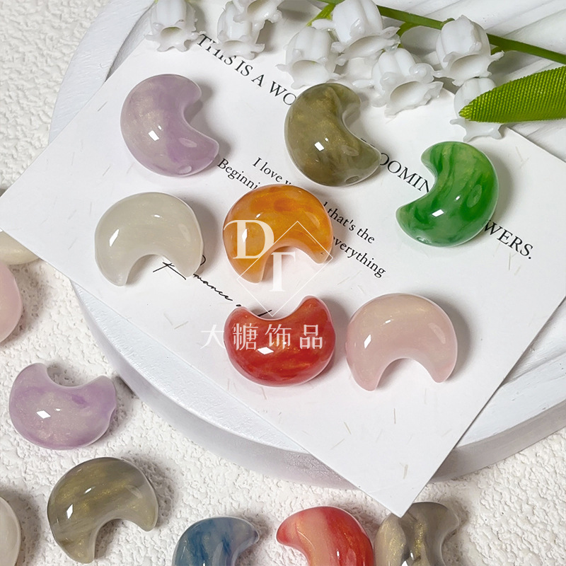 抖音直播热卖天体夜光鎏金月亮树脂散珠串珠挂件diy手机链配件