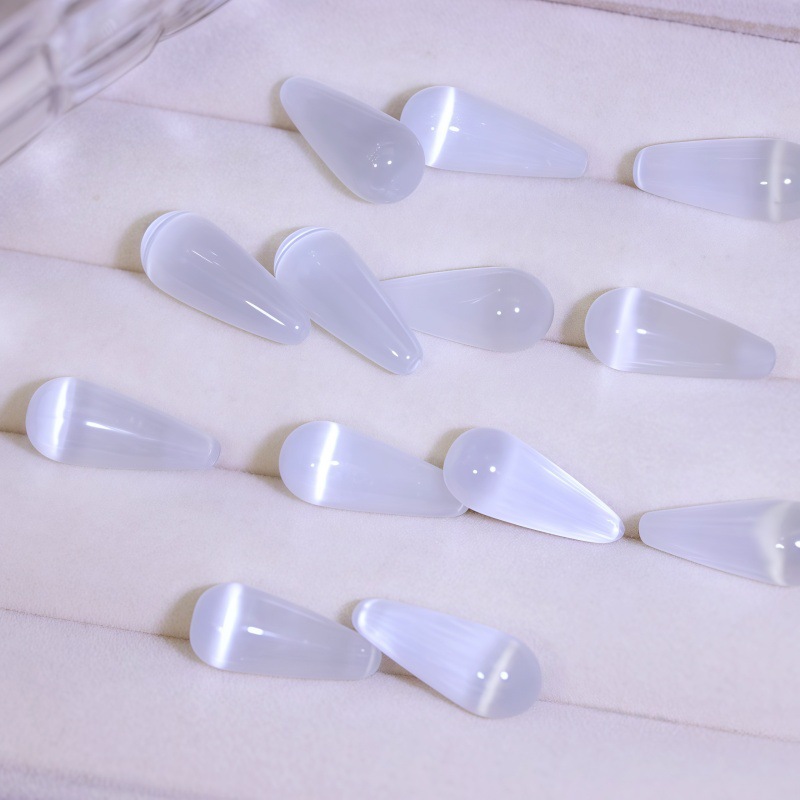 白色猫眼石立体水滴吊坠diy耳环项链饰品配件发簪散珠半成品批发
