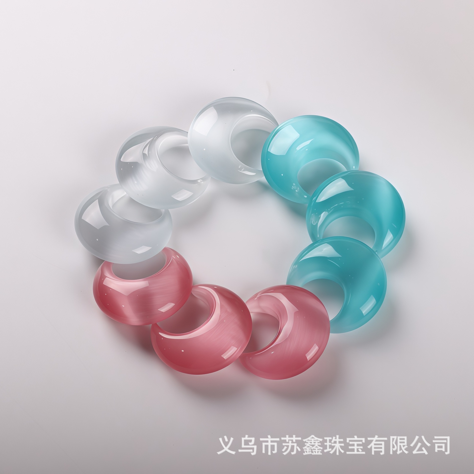オーバル半円平底白キャッツアイリング表面ルースビーズ半完成 DIY リングジュエリーアクセサリー工場直販