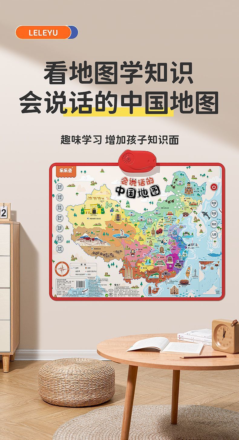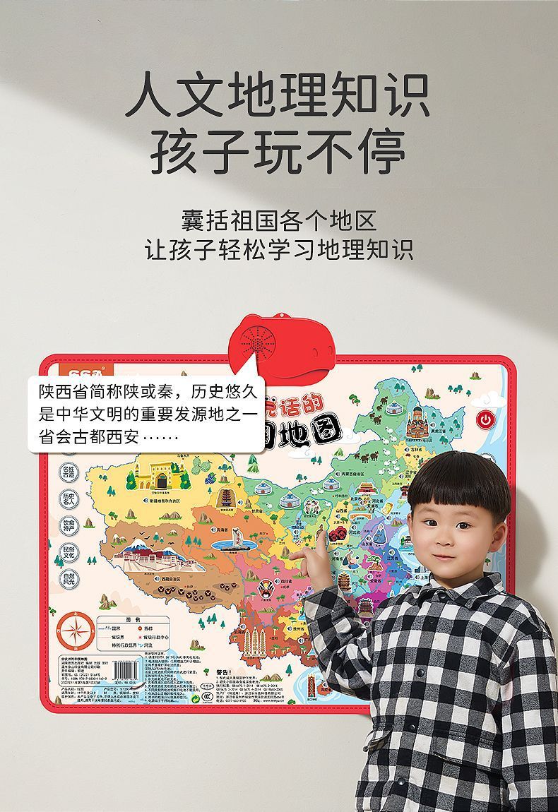 子供が音声を読んで中国地図世界地図認知学習学生地理百科知識早教