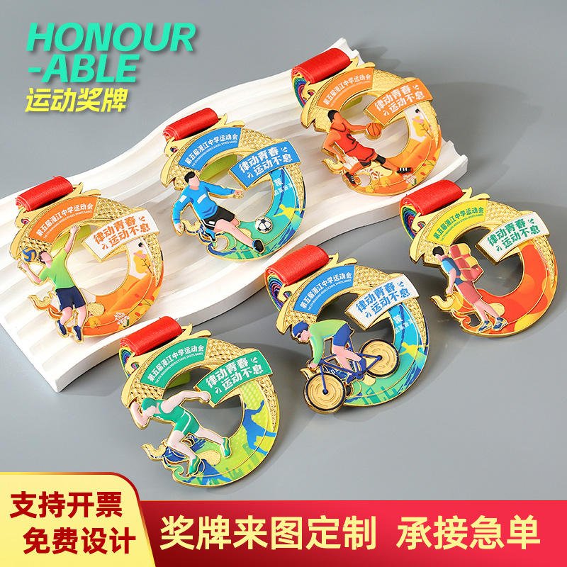 2025新款金属奖牌定制学校运动会跑步篮球足球登山比赛马拉松奖章