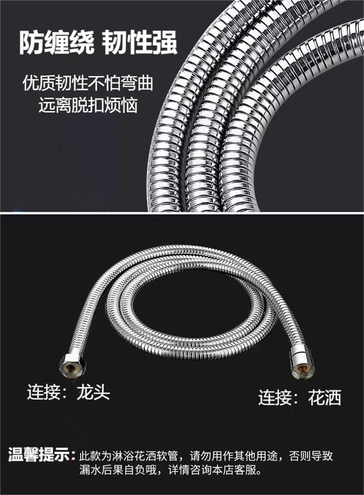 跨境不锈钢花洒软管加密管防爆淋浴水管电镀软管花洒进水管子四分