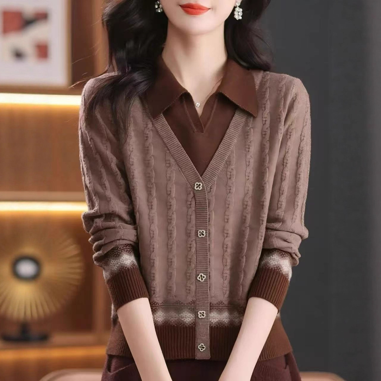 偽ツーピースニットトップ女性のシャツ襟セーター 2025 秋の新スタイル小さなシャツ女性の春と秋のボトリングシャツ
