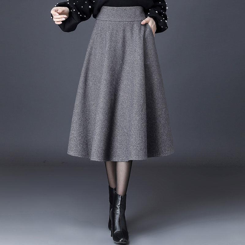 気質韓国版a字半身スカート秋冬女装新作痩せ中ロングスカートハイウエストラシャ大きく傘スカート