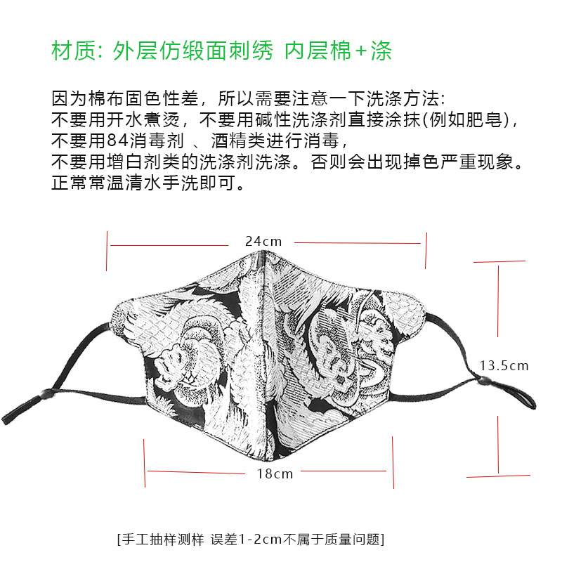 国潮龍年本命年に綿を入れて秋冬保温マスクを刺繍します。
