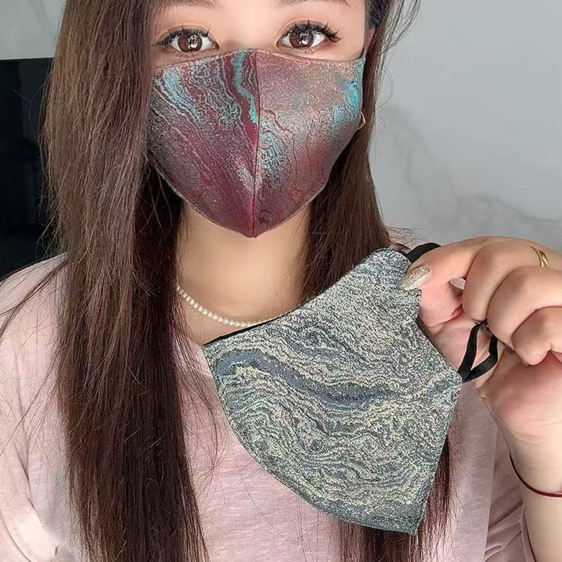 刺繍宮廷風秋冬ネット赤同マスク女神日焼け止め3d立体女性ジャカード痩せ顔小V顔