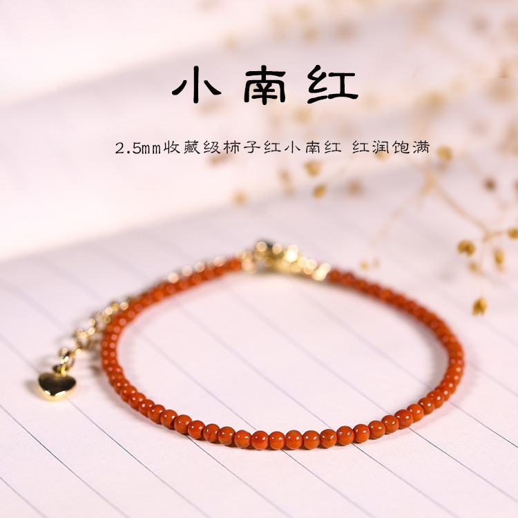 肉感たっぷりの天然赤瑪瑙ブレスレット、柿赤極細3mmブレスレット、古代スタイル、誕生年ブレスレット、生放送用