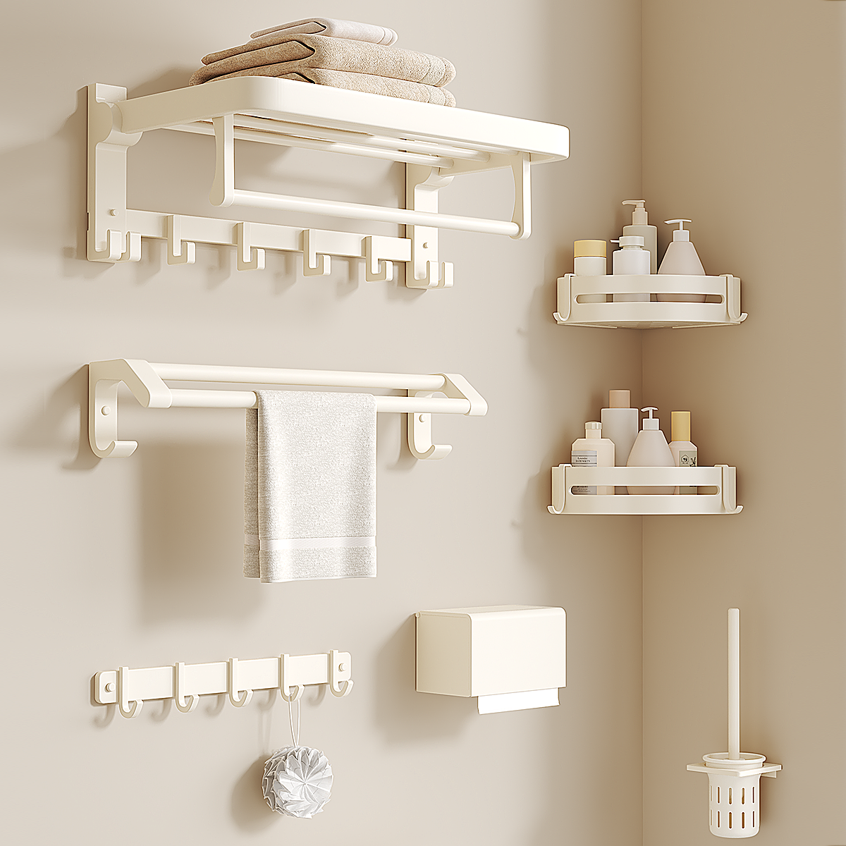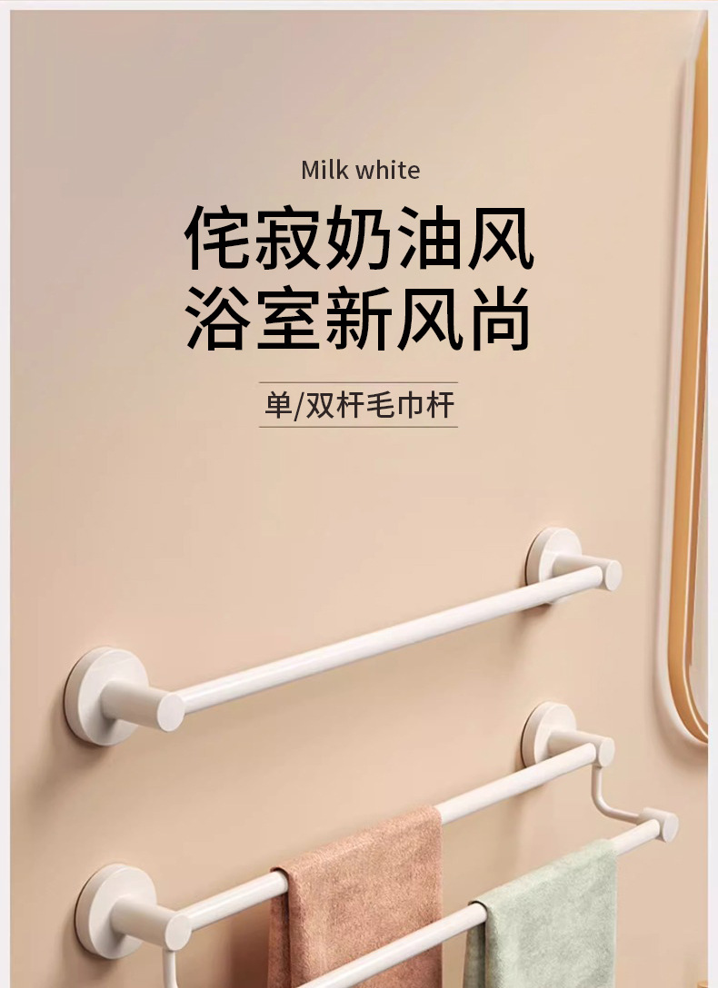 クリーム風タオル棚トイレ穴なし壁掛け棚浴室トイレ単棒タオル棒