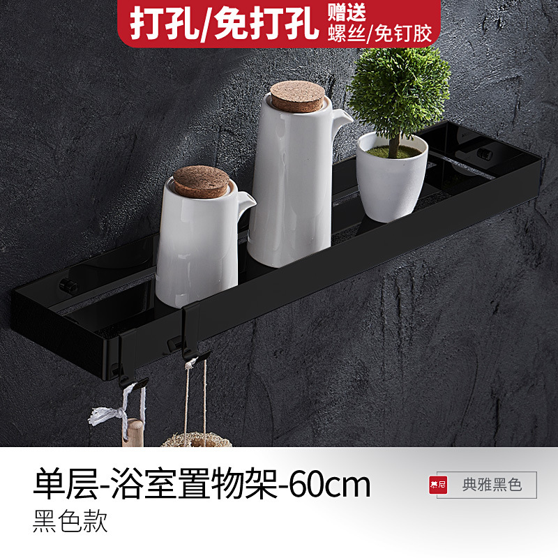 穴を開けないタオル棚バスタオル棚モップ棚家庭用トイレ宇宙アルミ黒色タオル棒浴室棚