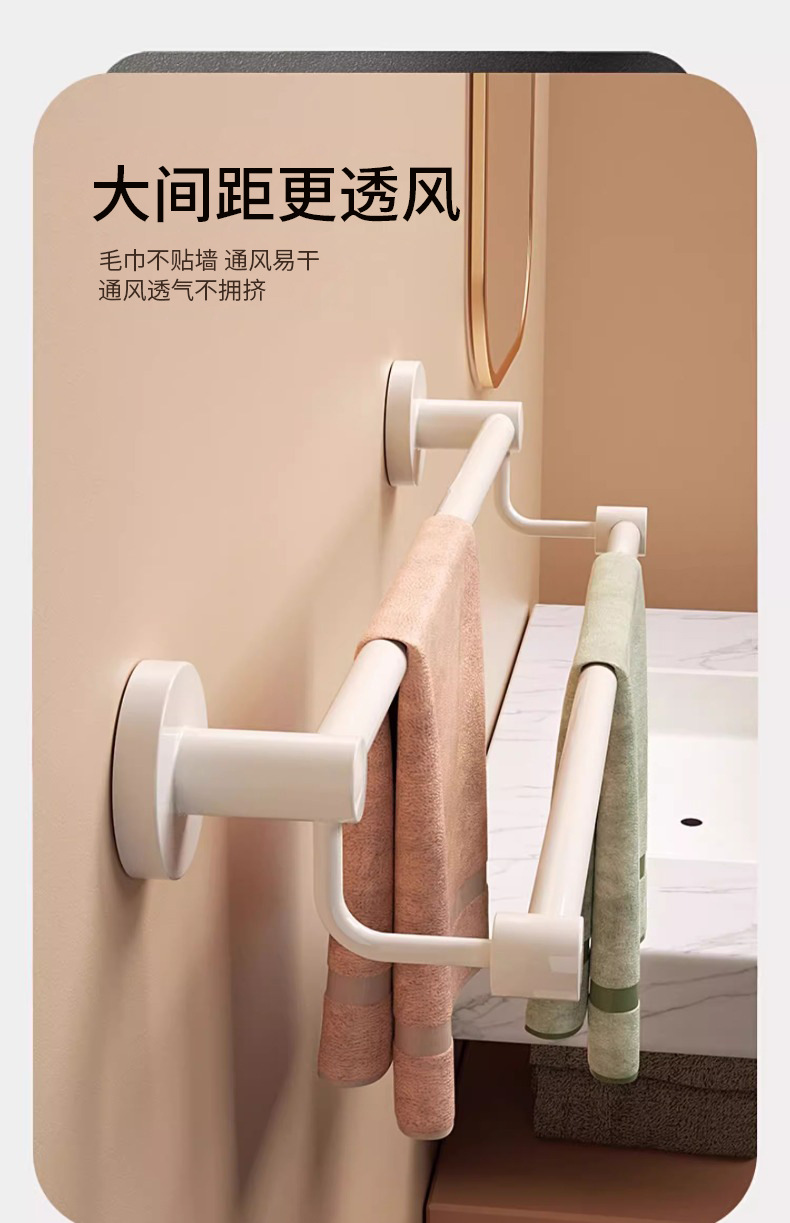 不锈钢折叠浴巾毛巾架壁挂式毛巾杆卫生间家居免打孔双杆置物架