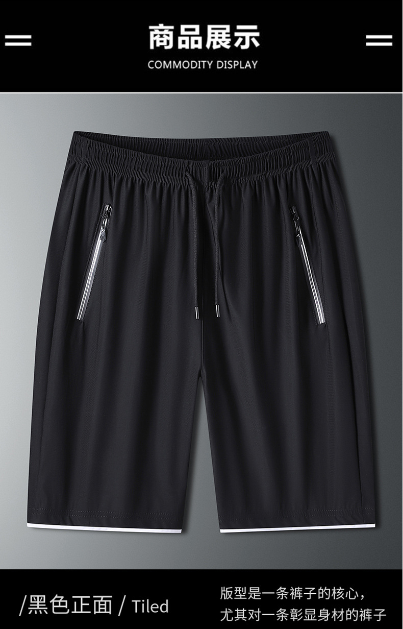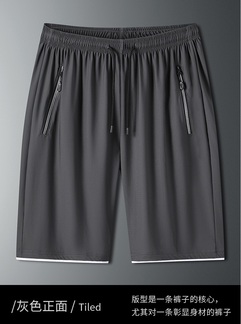 氷の糸の5分のズボンの男性の夏の薄いタイプのカジュアルな速乾のゆったりしている大きいサイズのファスナーのポケットの運動のフィットネスの男性のショートパンツ