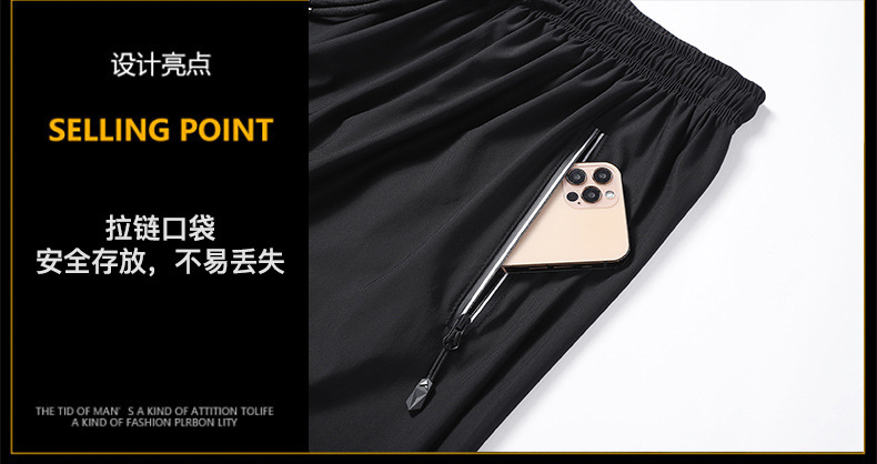 男性夏青年薄手氷糸通気ゆるいスポーツパンツ男性氷糸カジュアルパンツ速乾五分ズボン