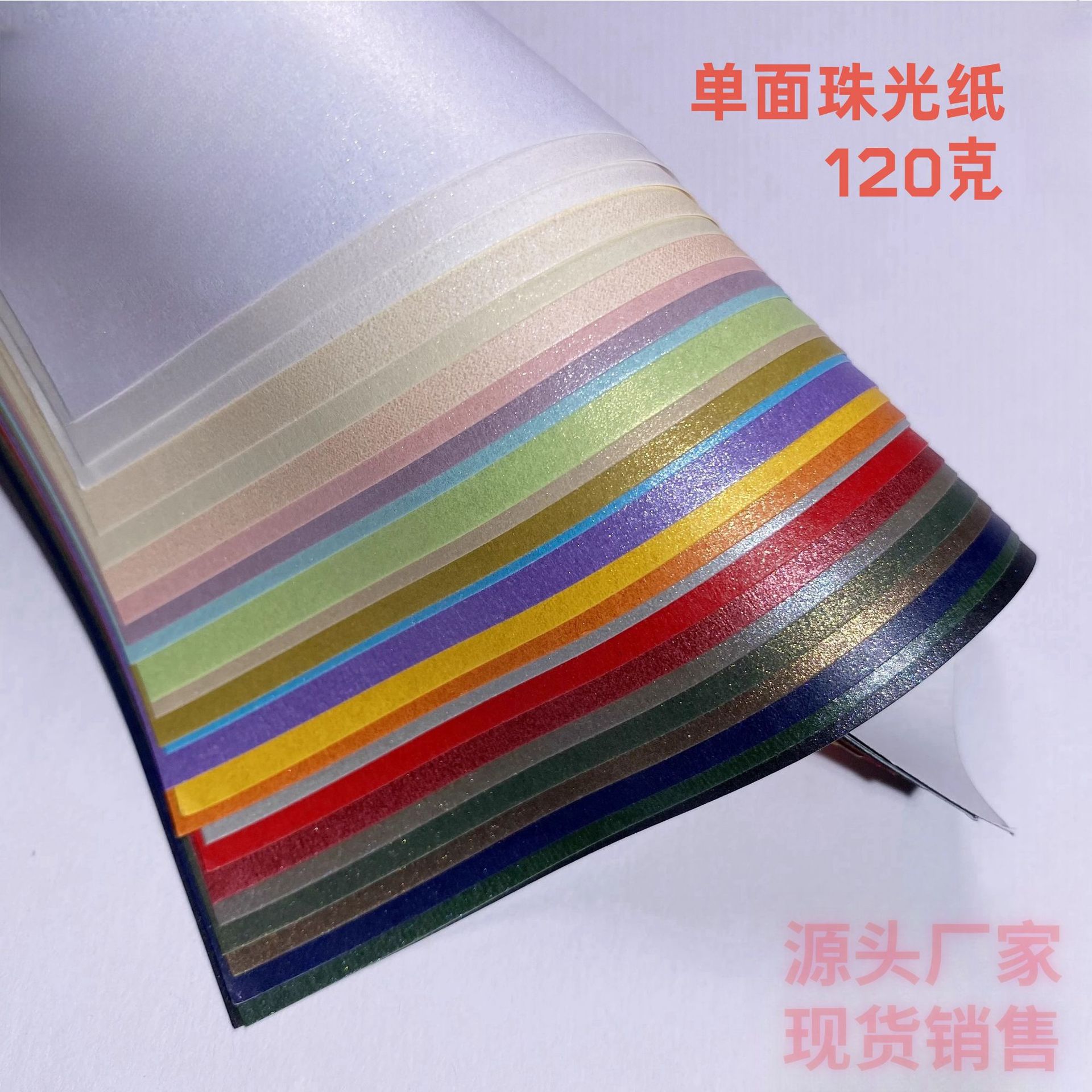 120克单面珠光纸和250克双面珠光纸 颜色有冰白、珠白、白金、米金、金黄、粉红、银白、金铜、酒红等。克重有110克、200克、250克、300克、350克。正大度。