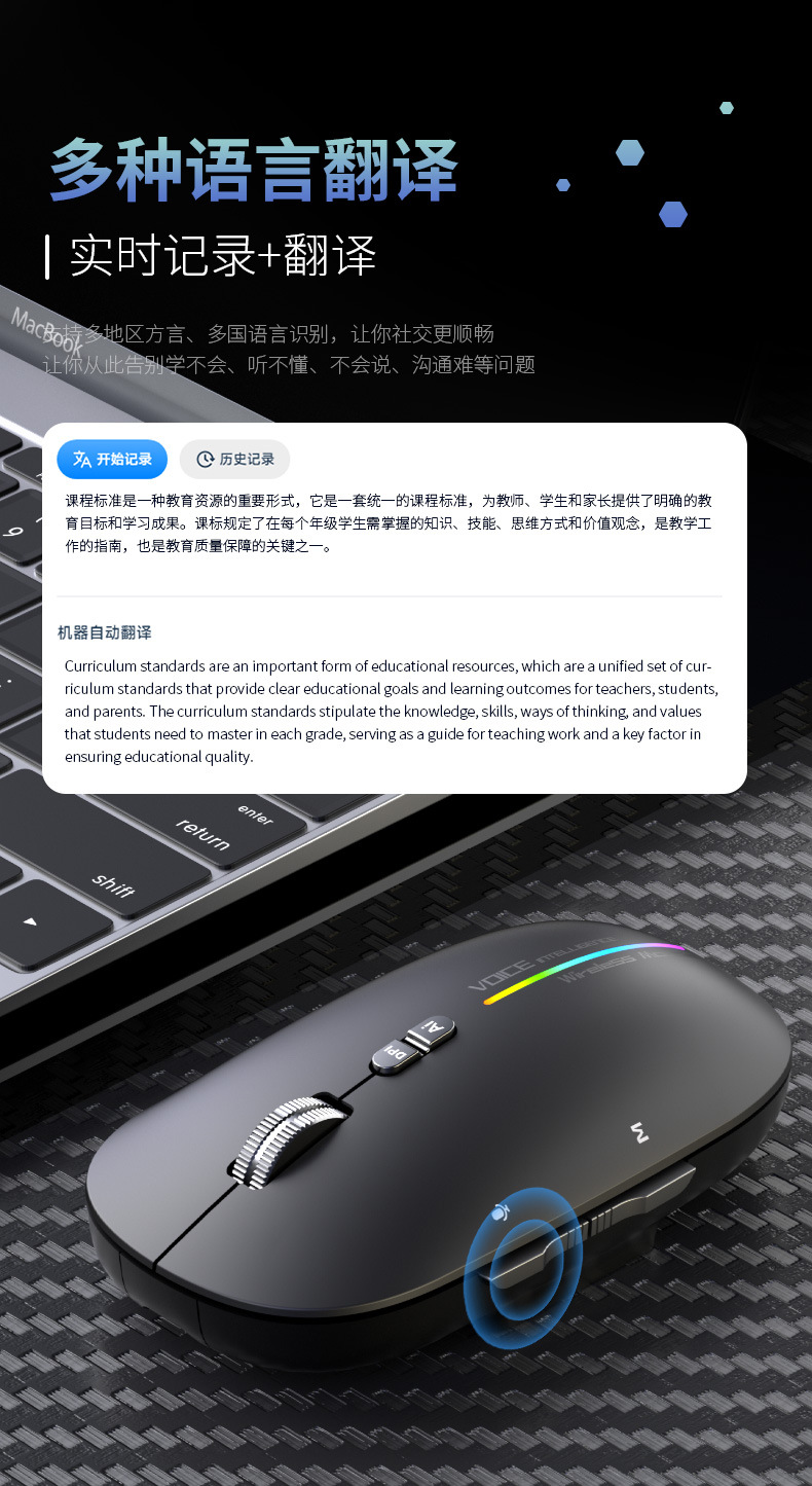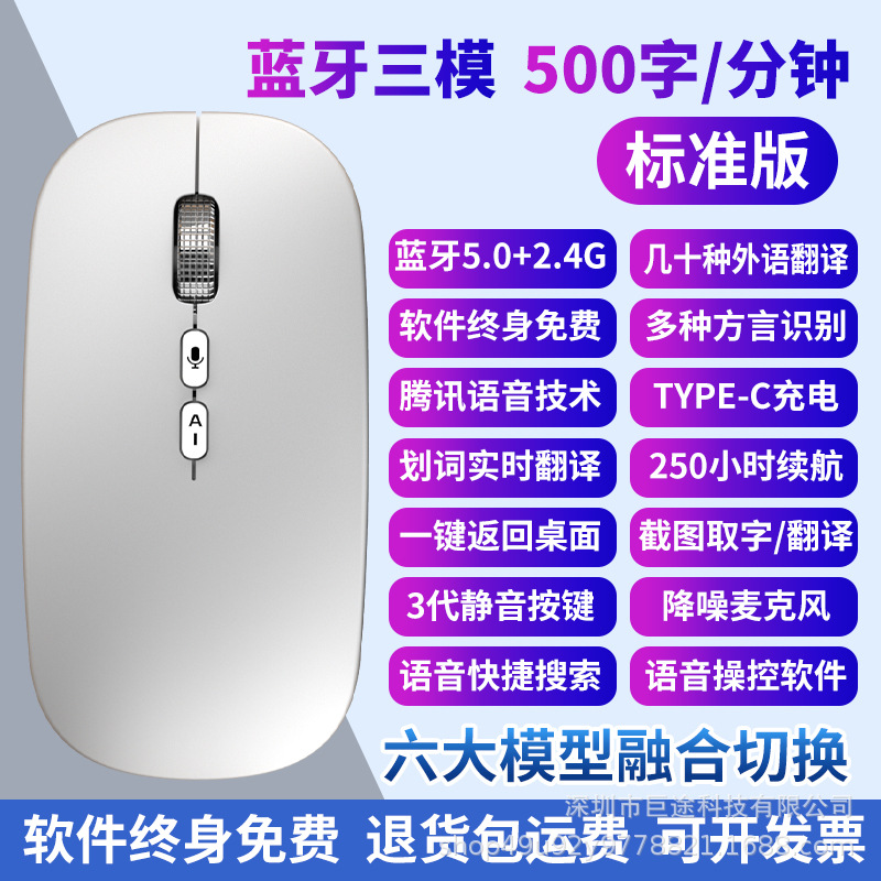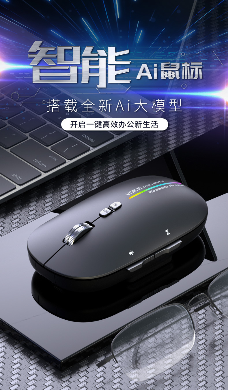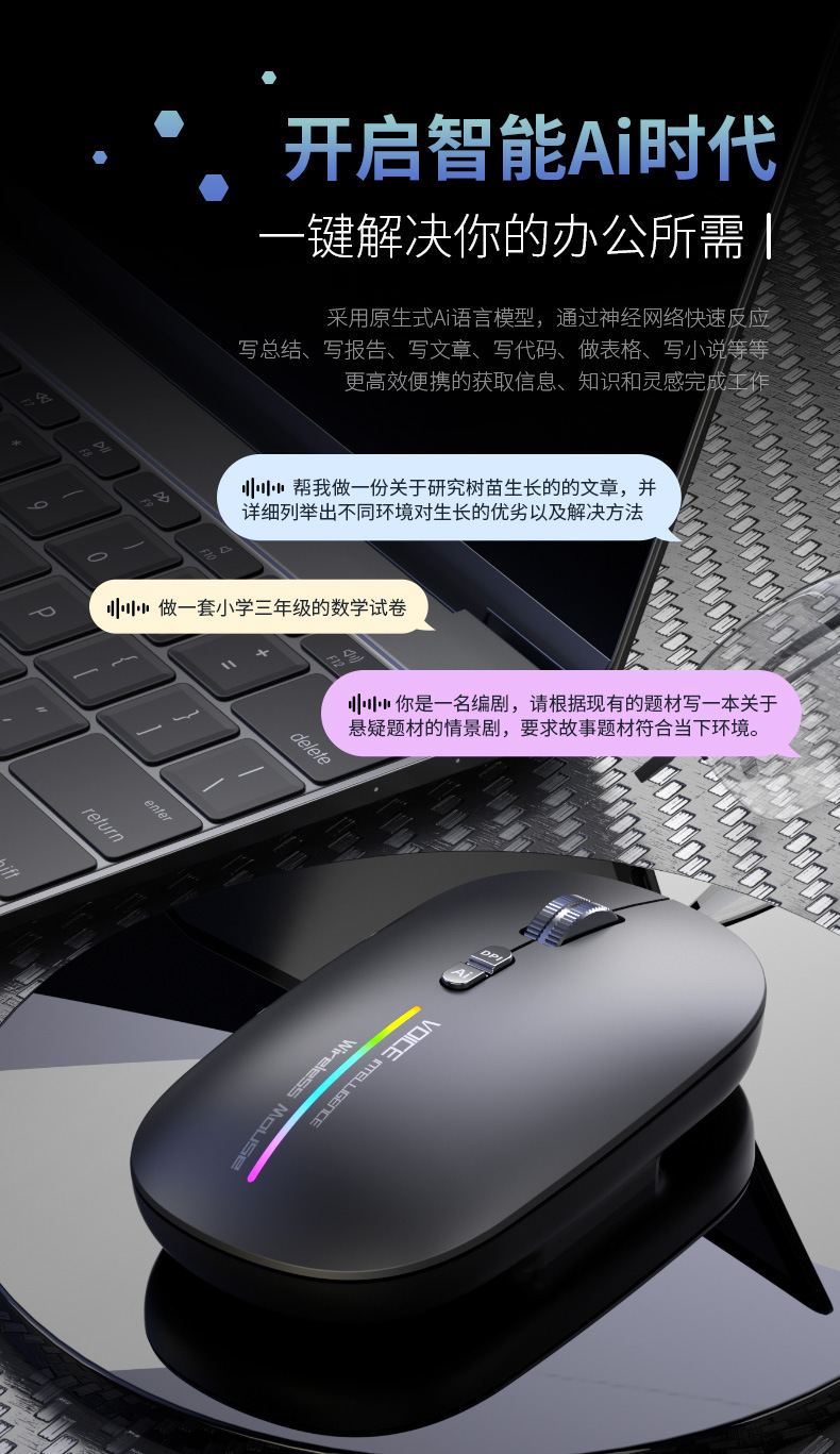 AIインテリジェント音声マウスai大モデル人工翻訳付きbluetoothデュアルモード静音オフィスゲームマウス