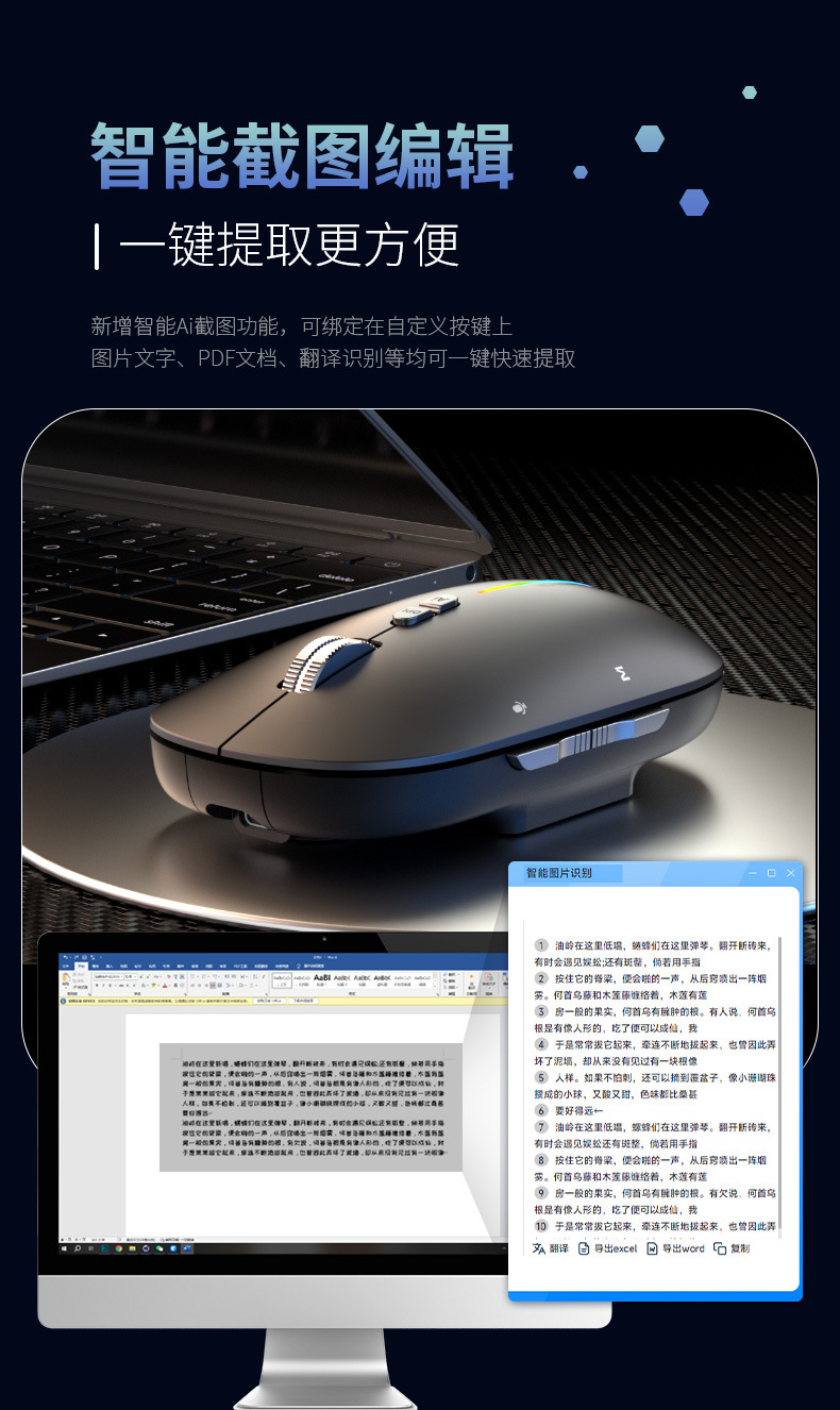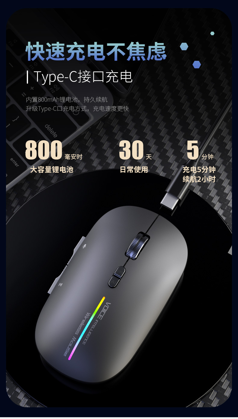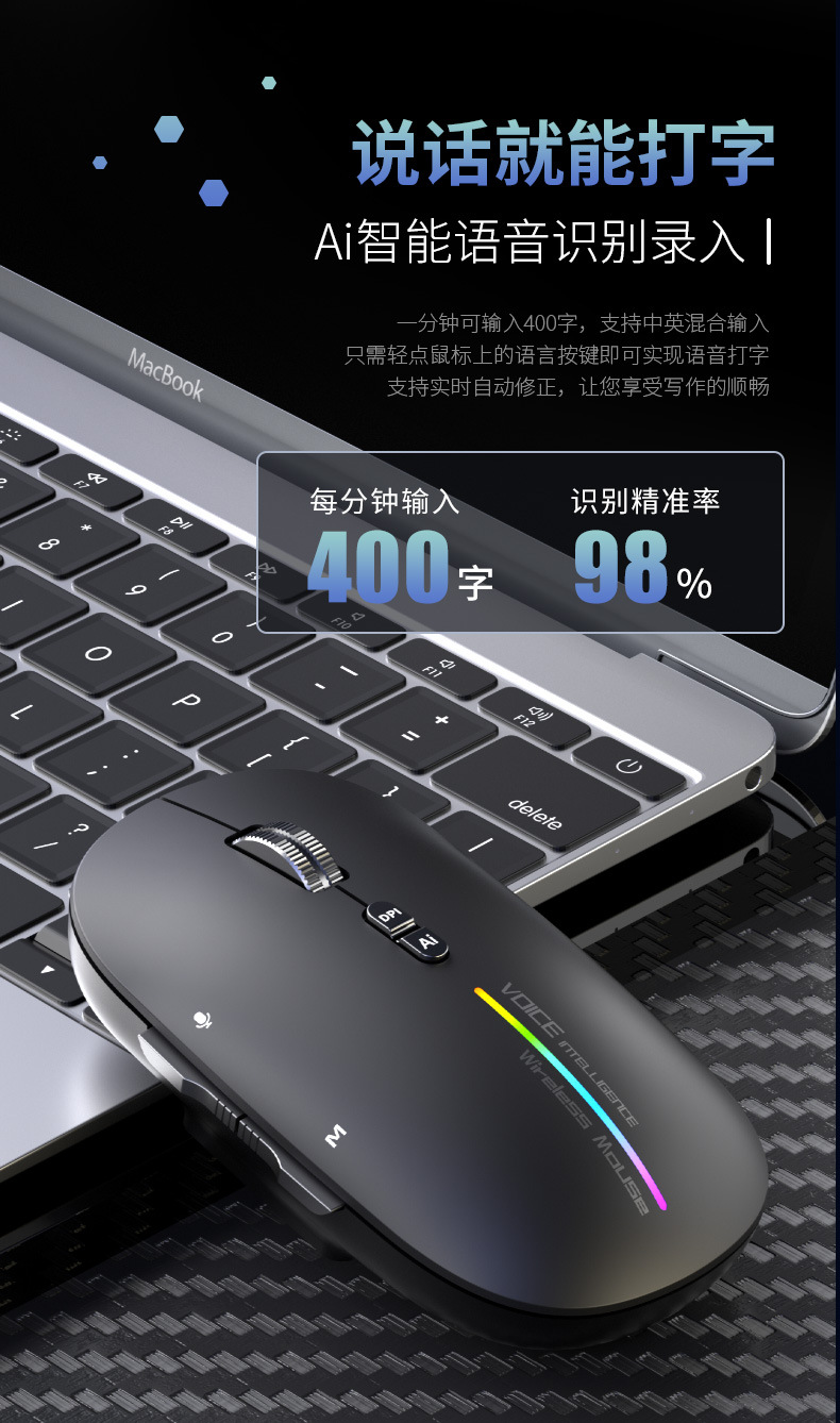 AIインテリジェント音声マウスai大モデル人工翻訳付きbluetoothデュアルモード静音オフィスゲームマウス