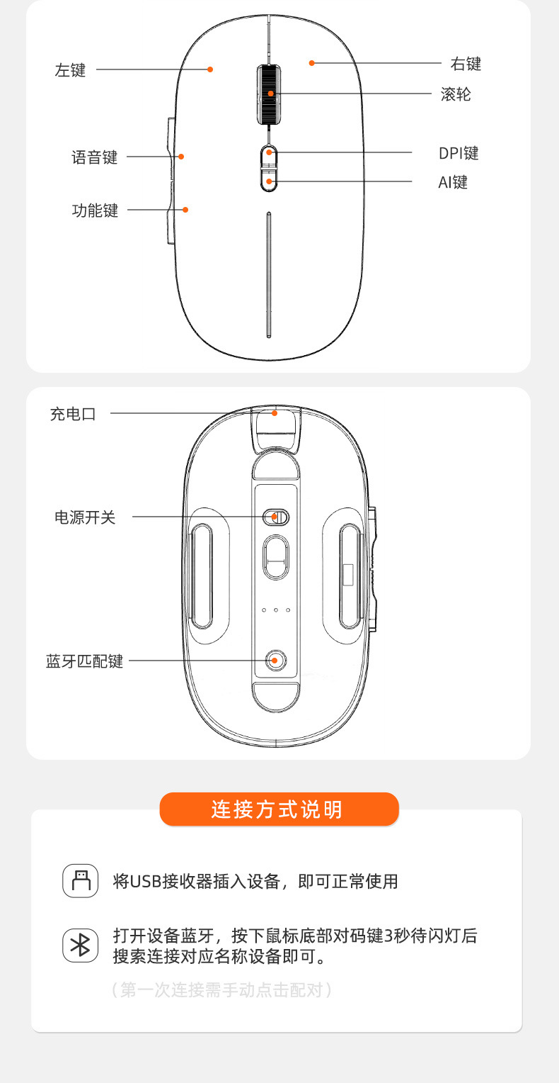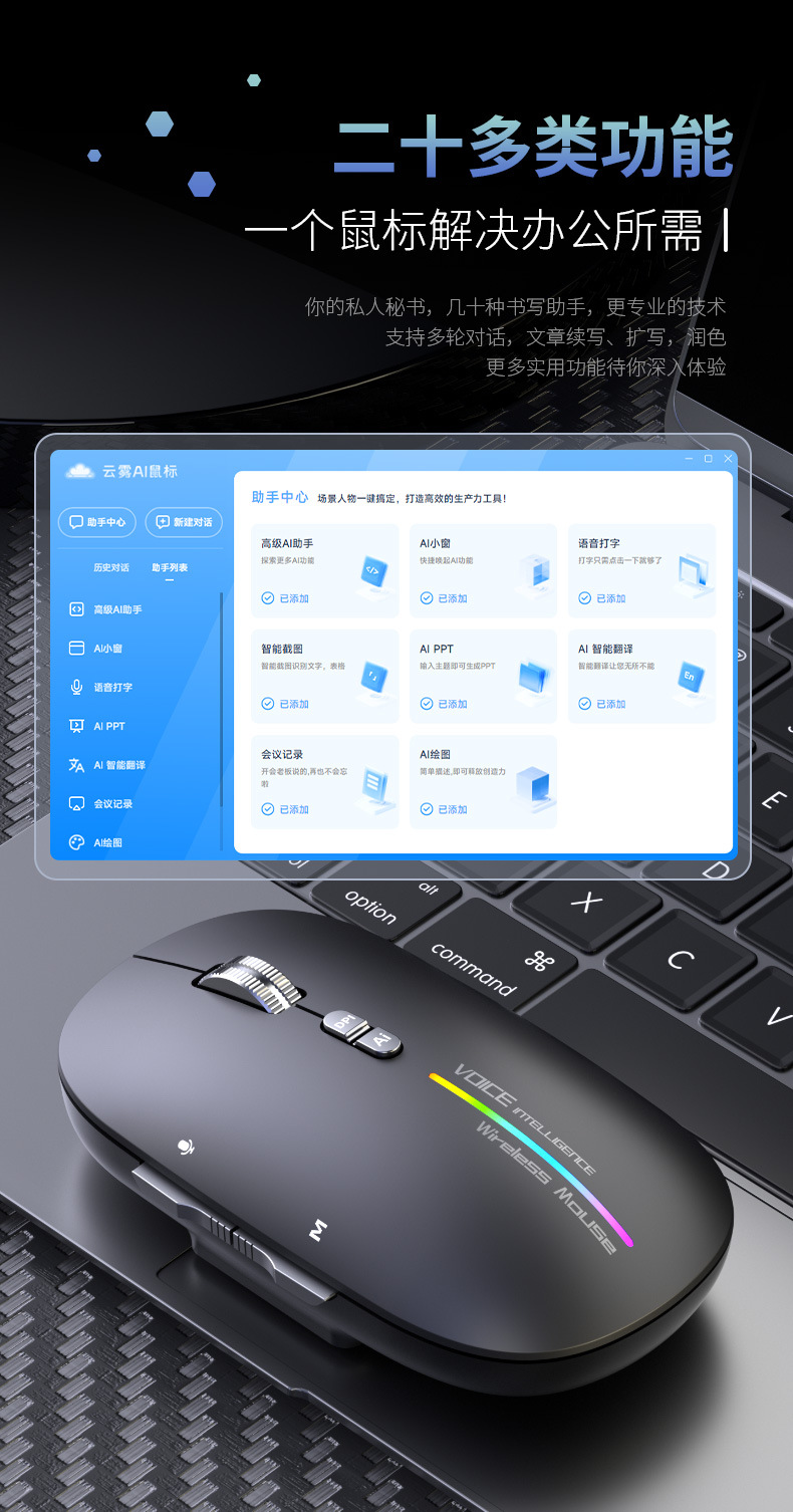 GPT智能AI语音鼠标无线蓝牙三模有线语音打字翻译DeepSeek写作PPT