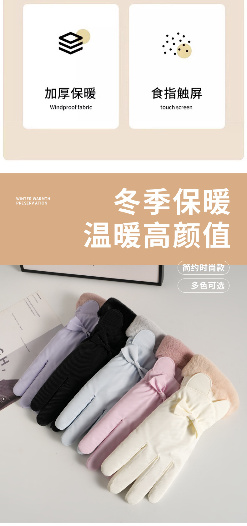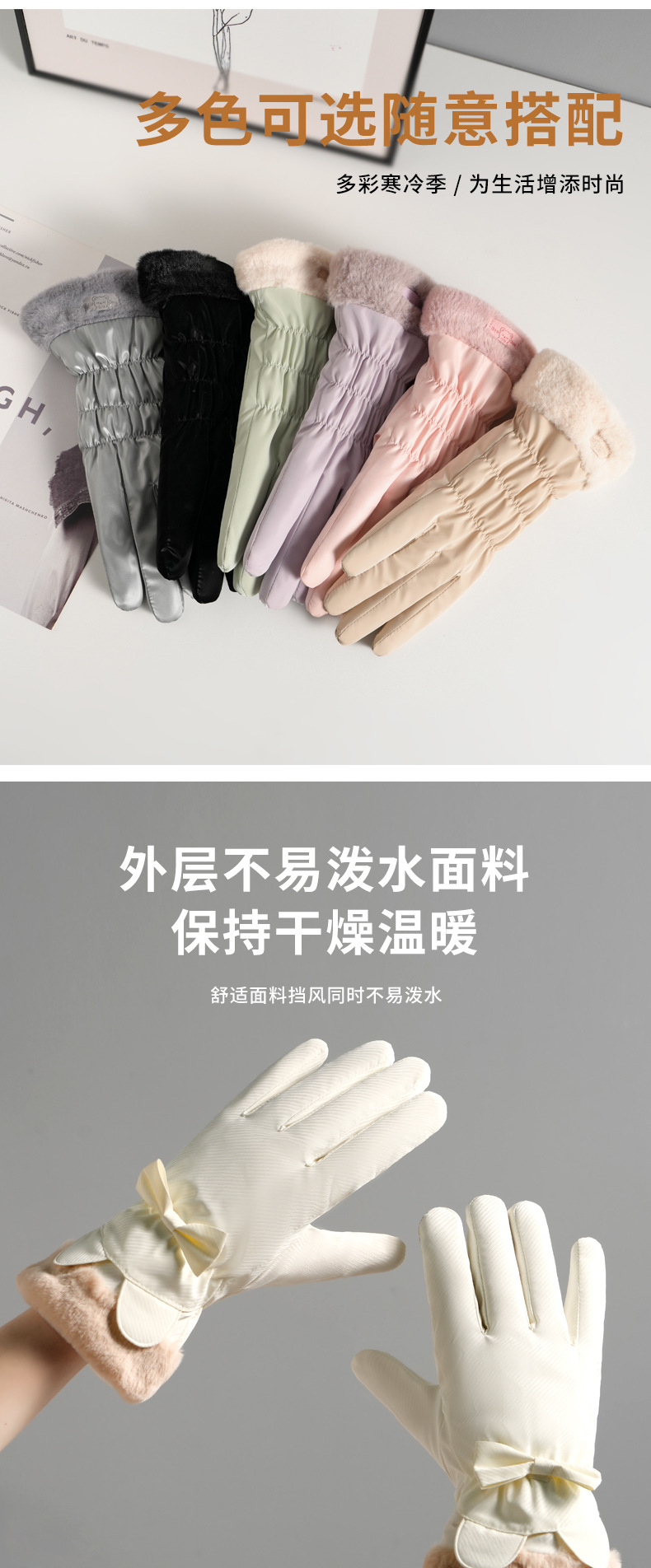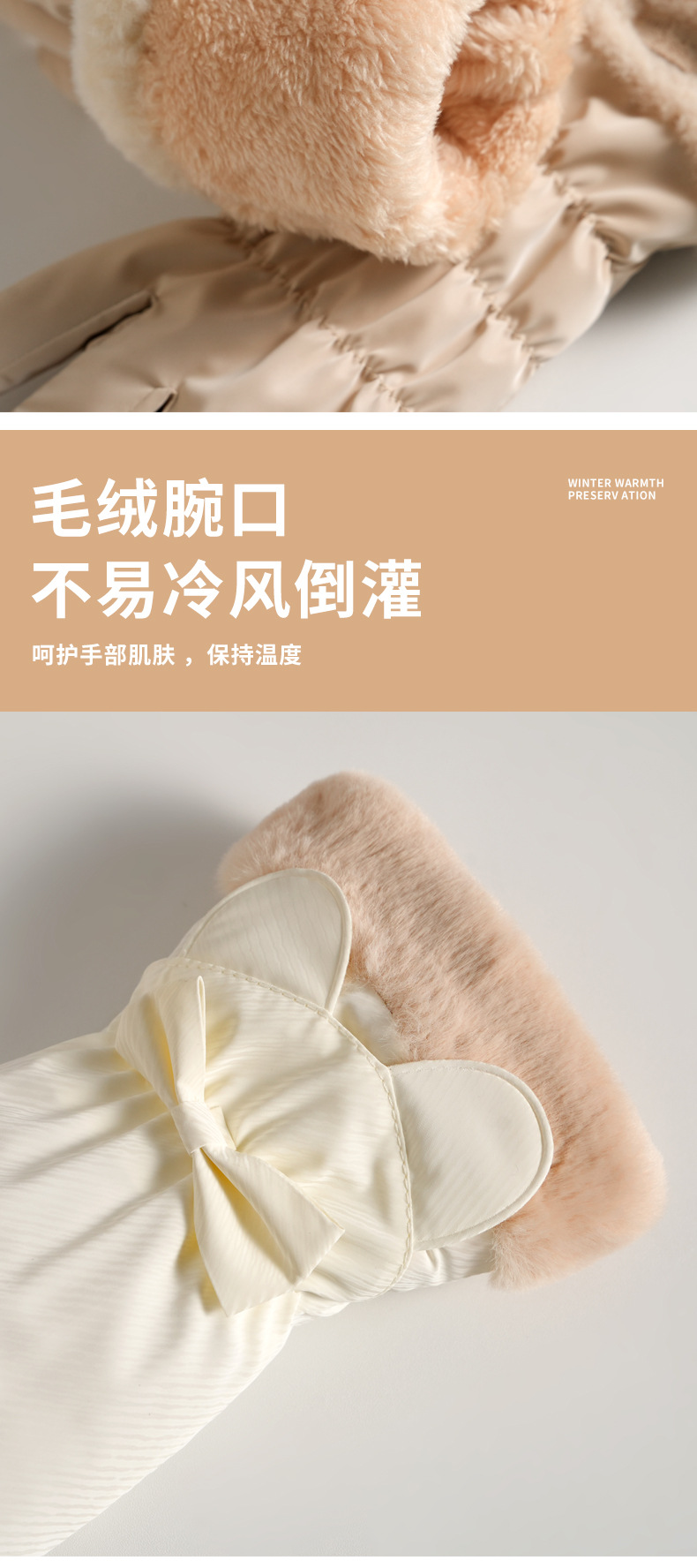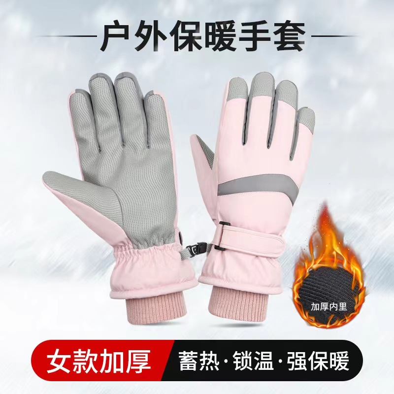 可爱滑雪手套女士加绒加厚冬季手套加棉防风防水电动车保暖冬天