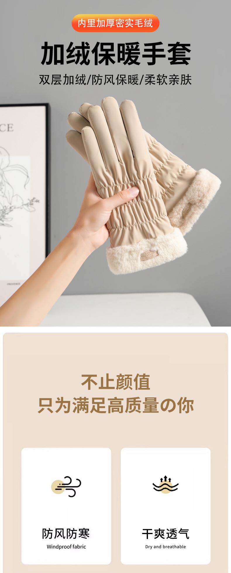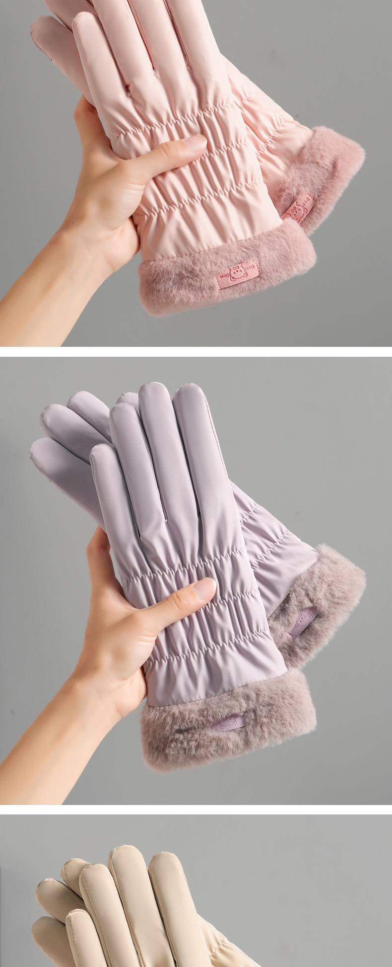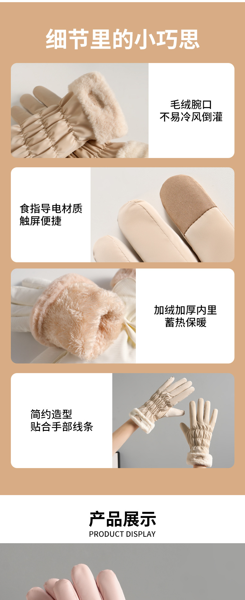 可爱滑雪手套女士加绒加厚冬季手套加棉防风防水电动车保暖冬天