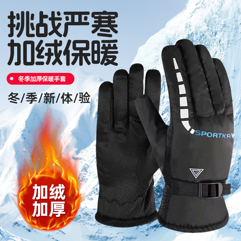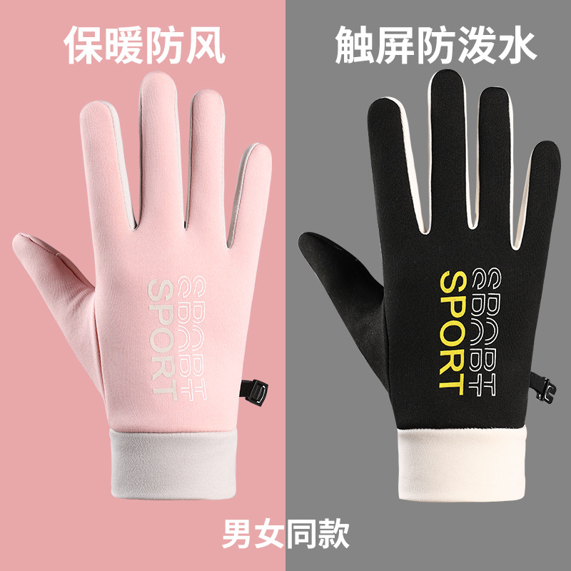 新型保温手袋男女冬にベルベットをつけたアウトドアスポーツが車に乗って指が漏れたタッチパネル防水滑り止め防風
