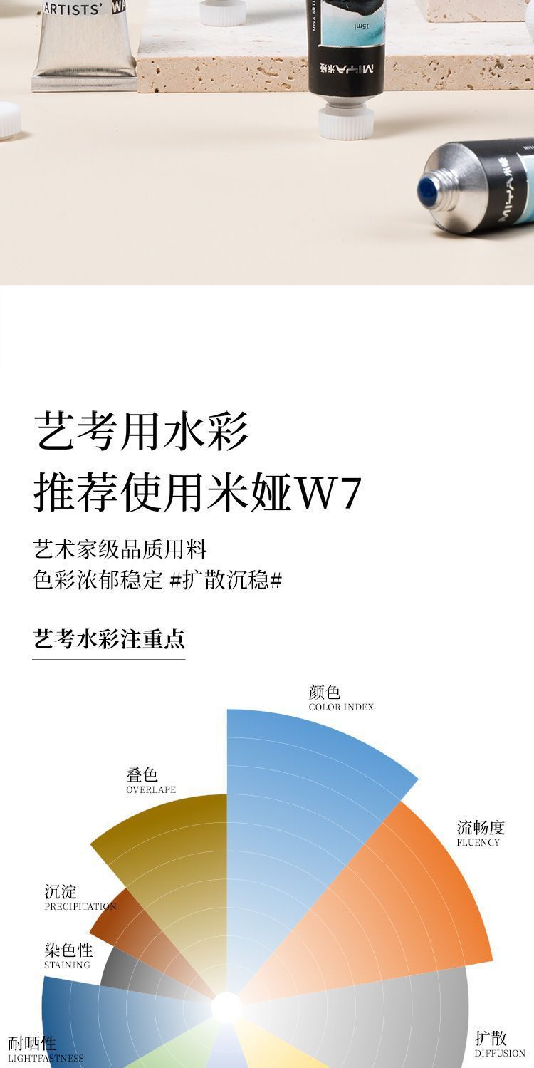 ミア水彩絵の具w 7管装水彩36色15ml単本自選美術学生芸考推薦水彩