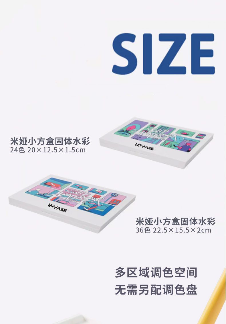 ミア 小さな四角いボックス 固形水彩絵の具 美術学生 子供 初心者 絵画 水溶性 24色 36色