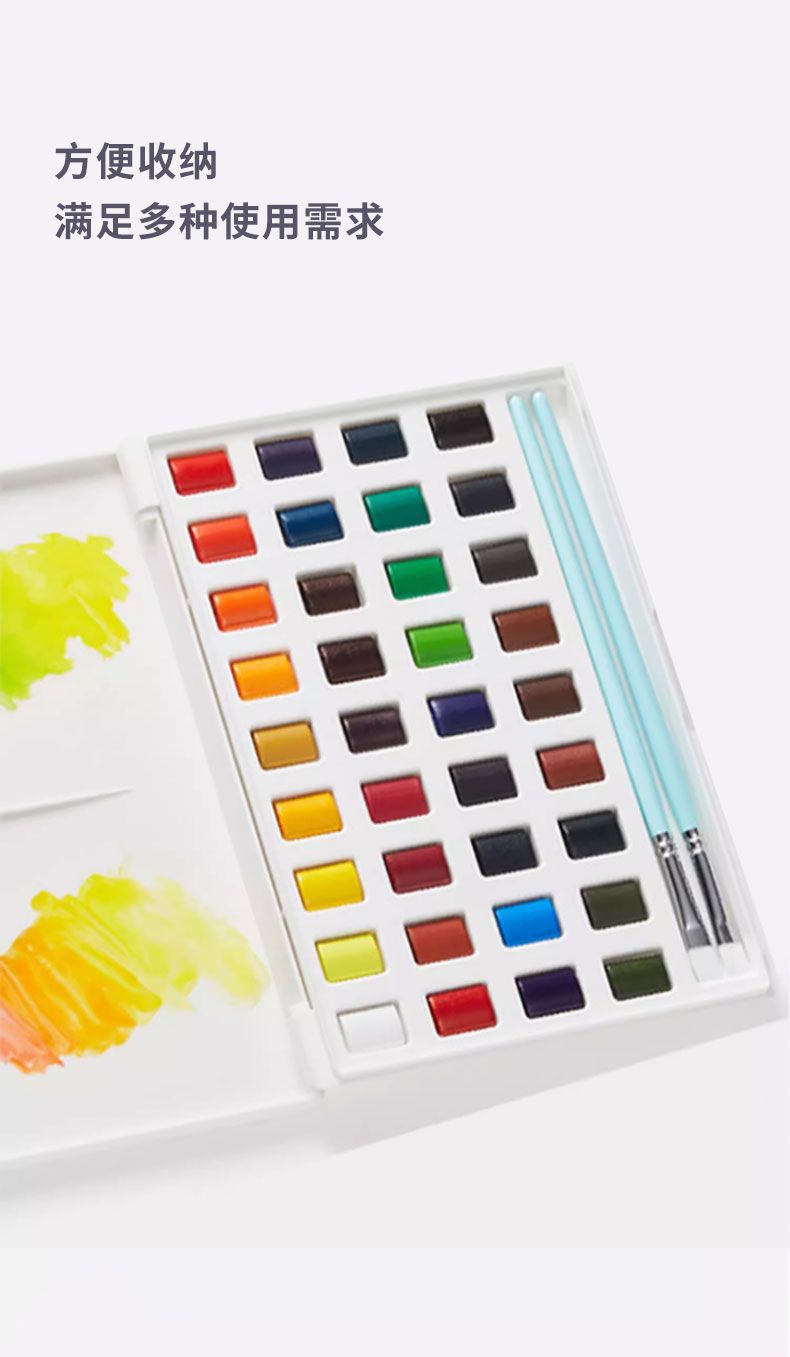 ミア水彩小方箱固体水彩粒携帯型小箱36色学生専用透明水彩絵の具